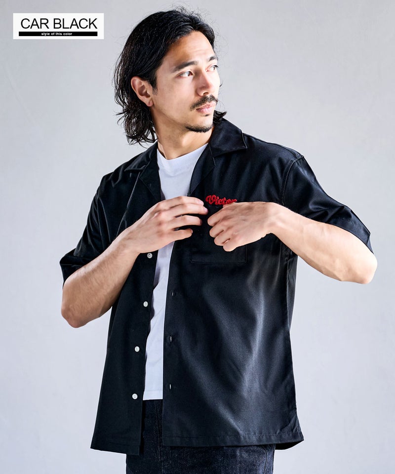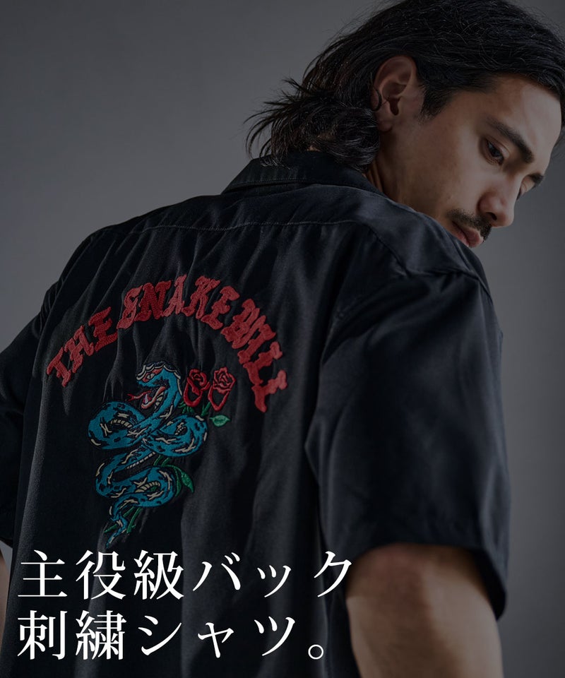 存在感あふれるバック刺繍が目を惹く、夏の主役級半袖シャツです。