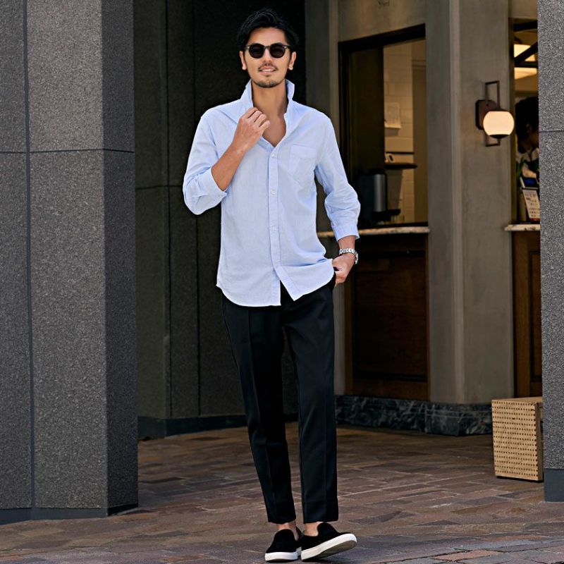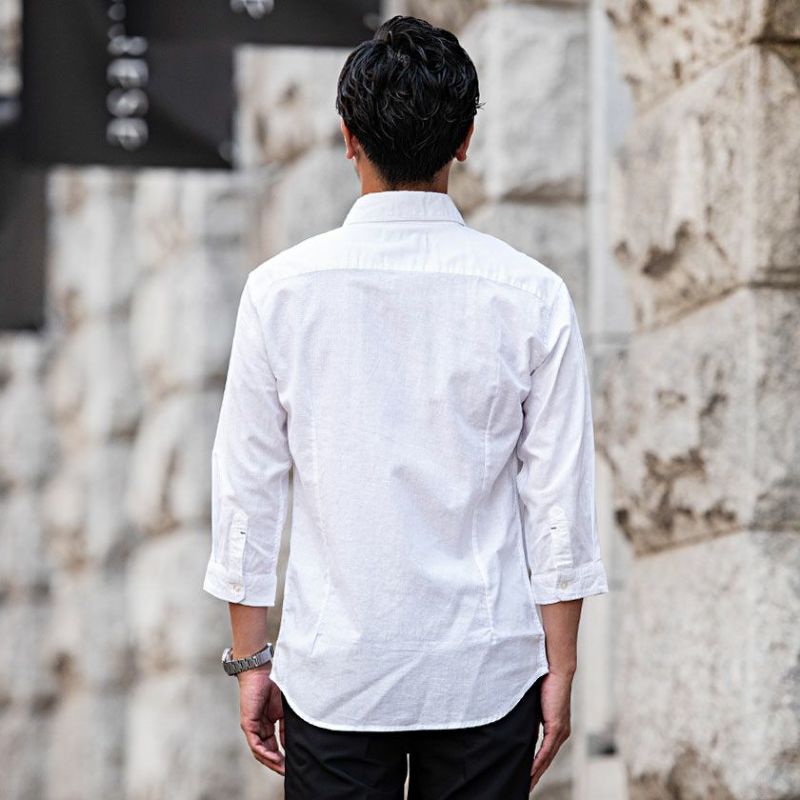 麻と綿の混合生地を使用しサラッとした肌触りが心地よい清涼感のある一着。