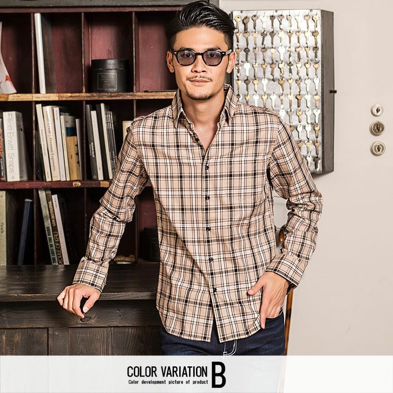シャツ メンズ 長袖 おしゃれ チェックシャツ チェック柄 レギュラーカラー 長袖シャツ トップス カジュアルシャツ ベージュ きれいめ ワイシャツ ビジネス リモートワーク 在宅勤務 CavariA(キャバリア)チェック柄レギュラーカラーシャツ/全2色