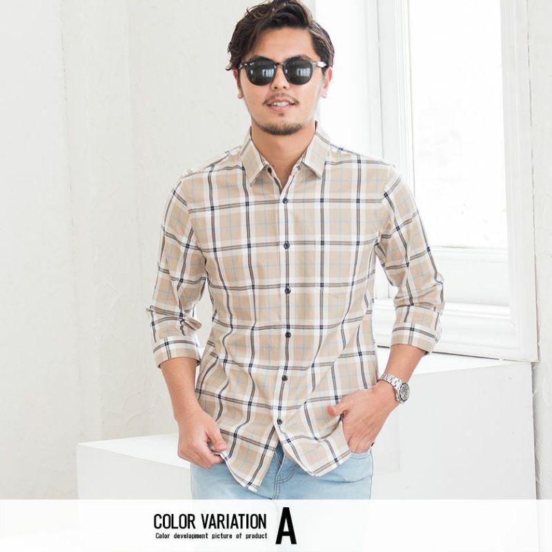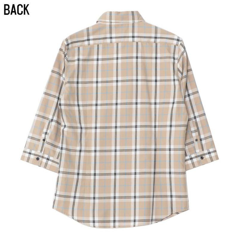 シャツ メンズ 7分袖 チェック柄 ブランド レギュラーカラー 七分袖 七分袖シャツ トップス チェックシャツ ベージュ きれいめ カジュアル ファッション CavariA(キャバリア)チェック柄レギュラーカラー7分袖シャツ/全2色