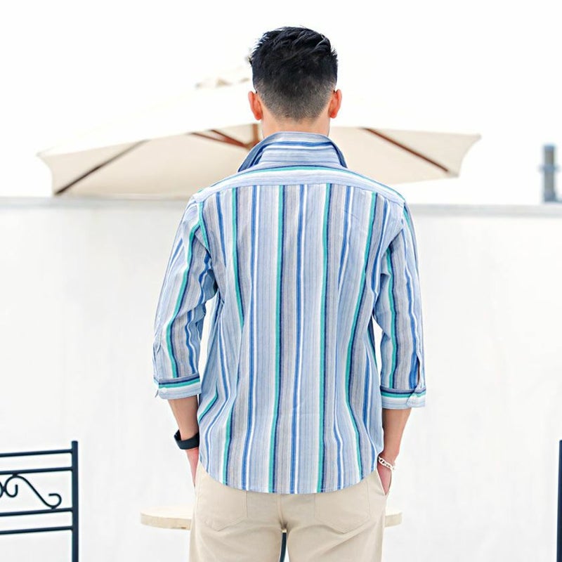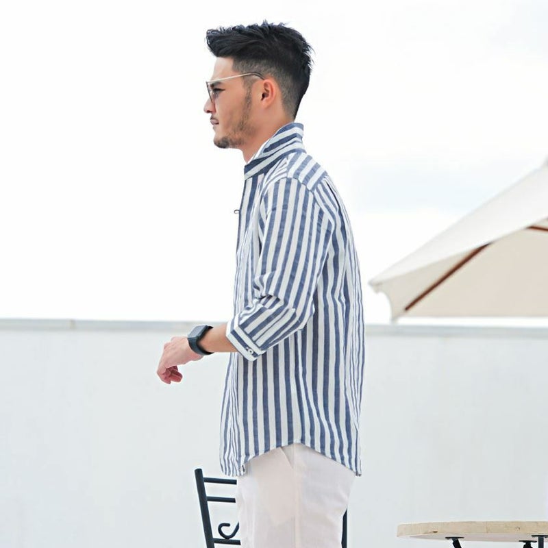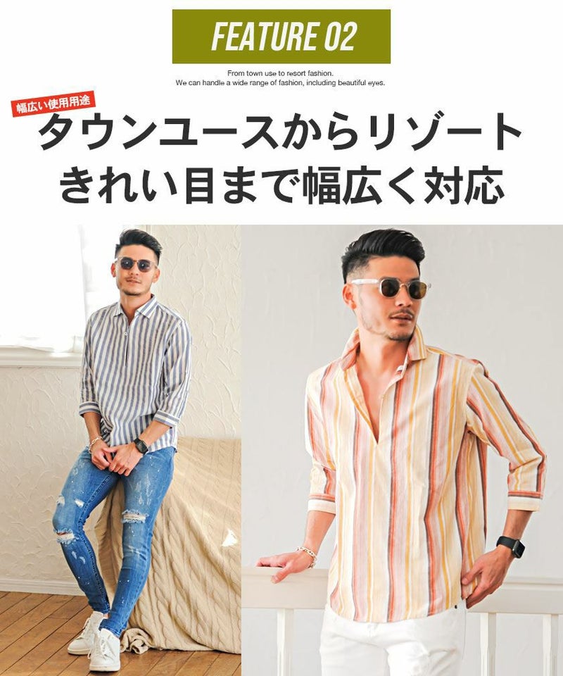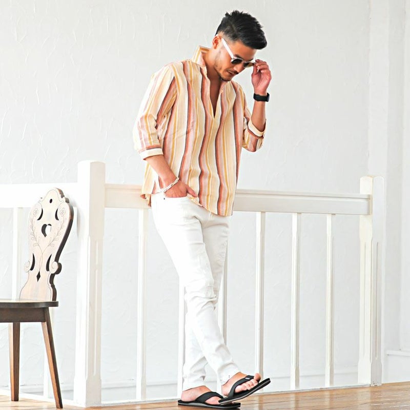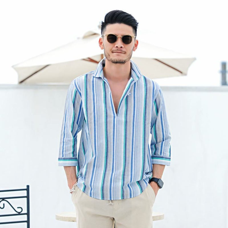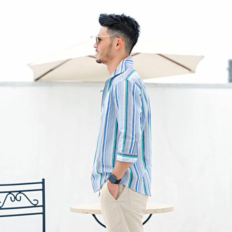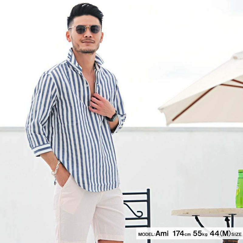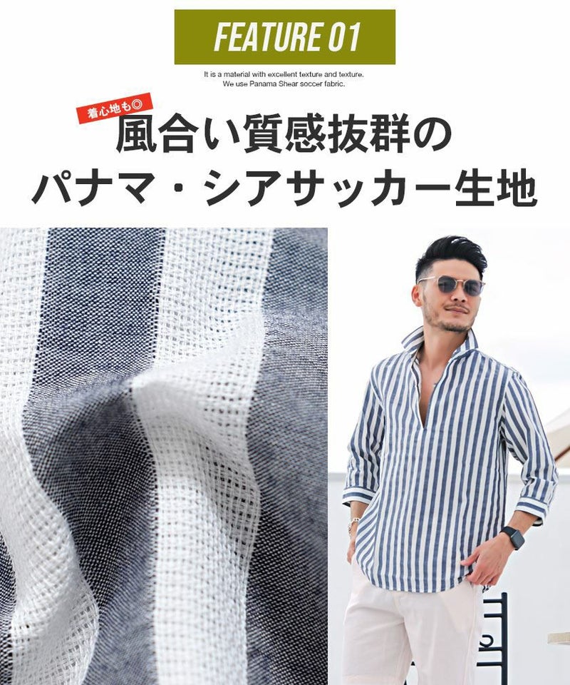 通気性が良く清涼感のあるパナマ織り、シアサッカー生地を使用したシャツ。
