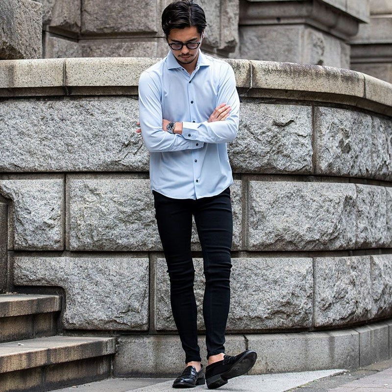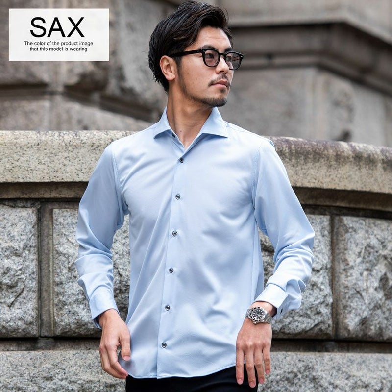 ネクタイを締めると綺麗に立ち上がった襟元が強調され、美しいシルエットに。