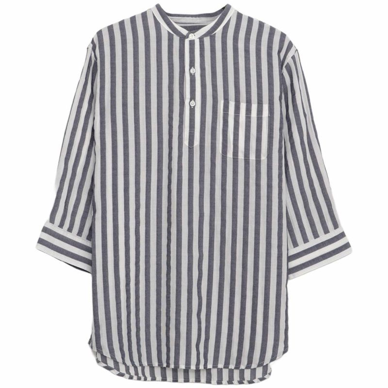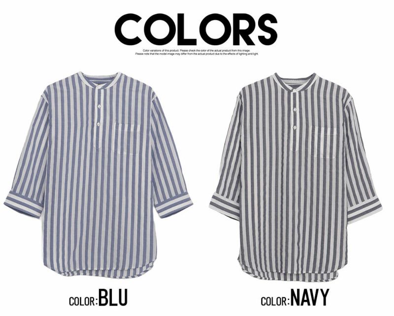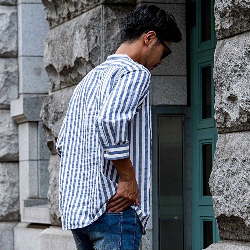 通気性に優れた「パナマ織り」生地を採用した、清涼感抜群のバンドカラーシャツ。ラフながらも上品な佇まいで、大人の夏コーデに差をつける一着。 CavariA(キャバリア)パナマ織ストライプバンドカラープルオーバー7分袖シャツ/全2色