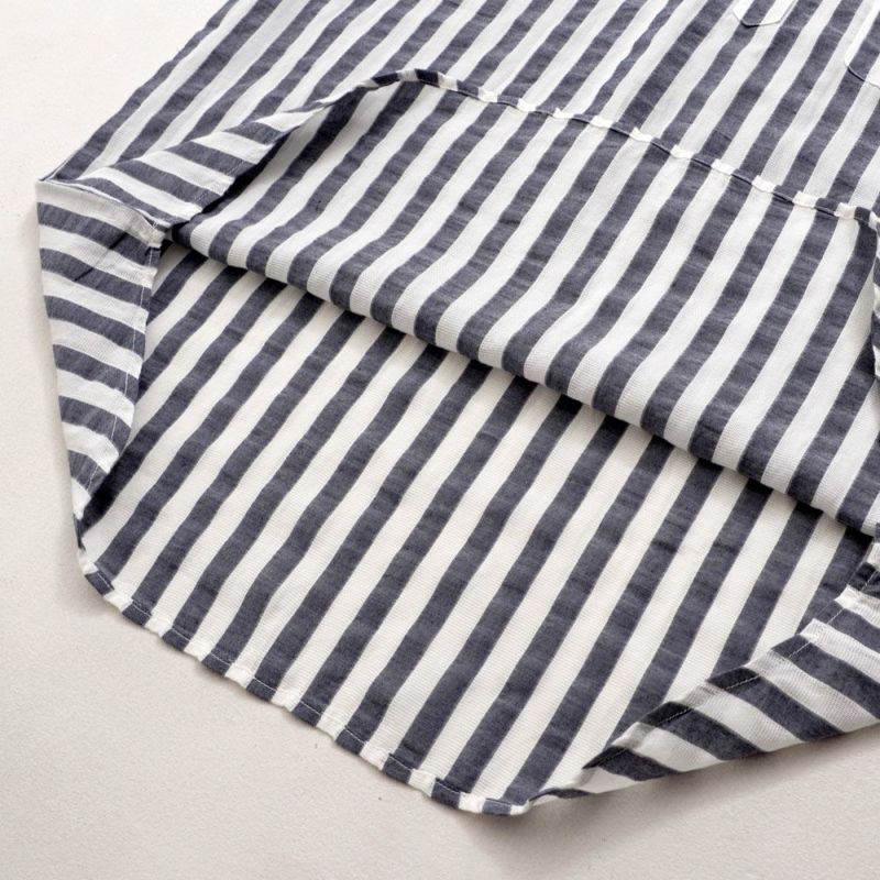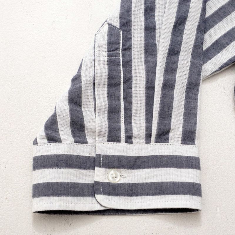 ナチュラルなラフさが魅力のシルエットながら、爽やかなストライプ柄でスタイリッシュな印象に。