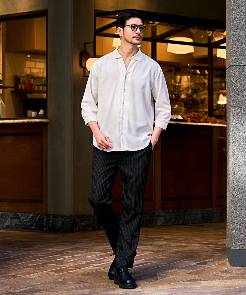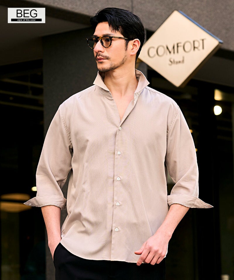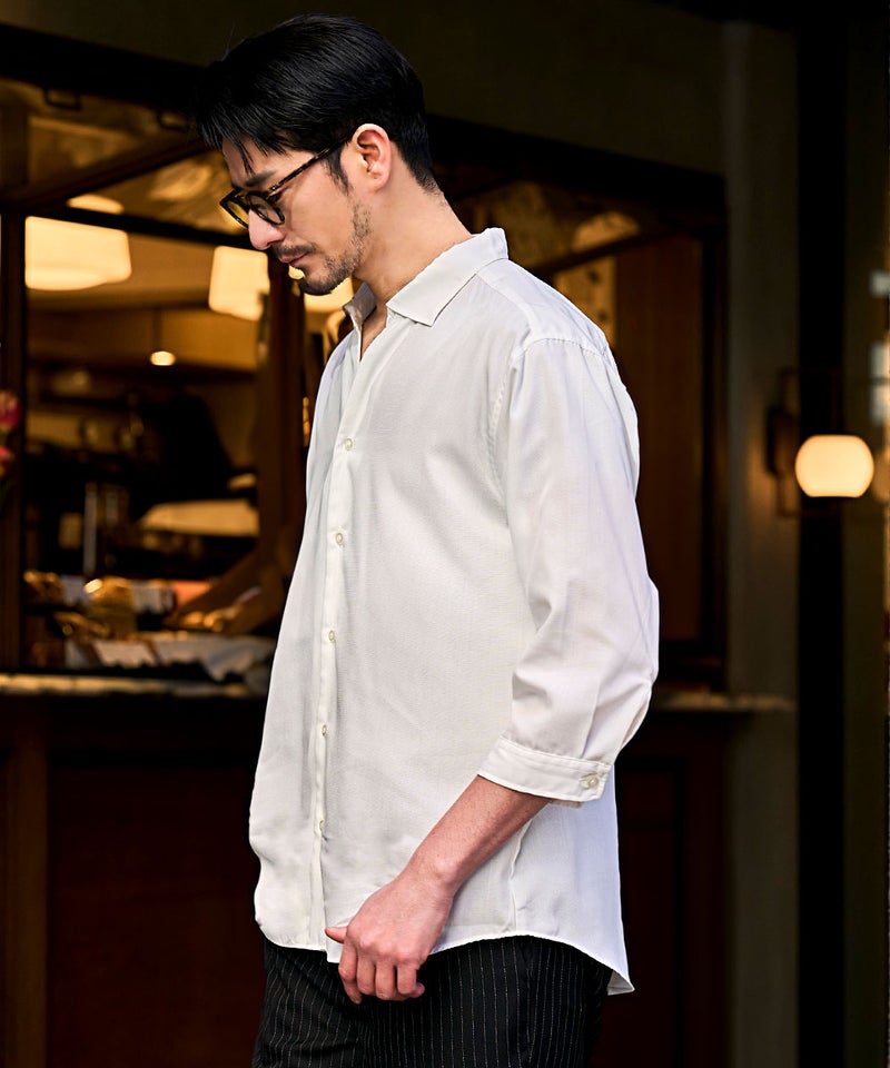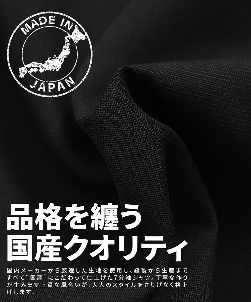 国内メーカーから厳選した生地を使用し、縫製から生産まですべて“国産”にこだわって仕上げた7分袖シャツ。