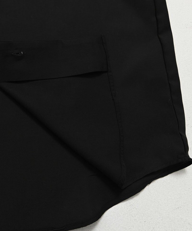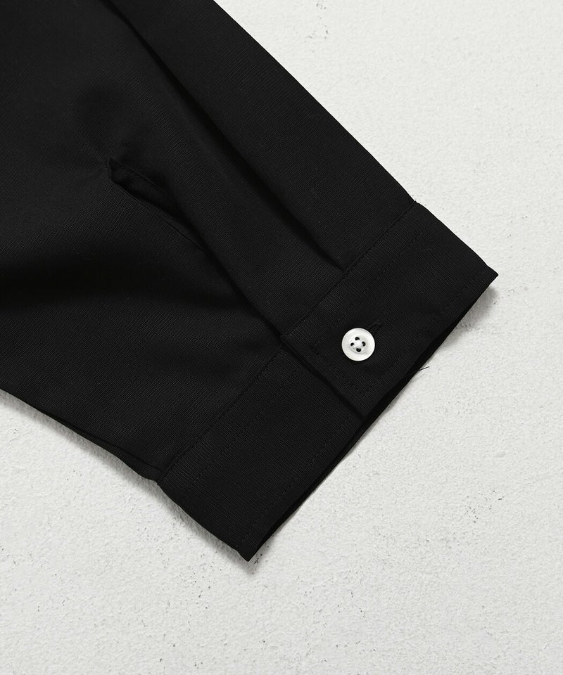 襟元は首元がV字に深く開いたスキッパーデザインを採用。