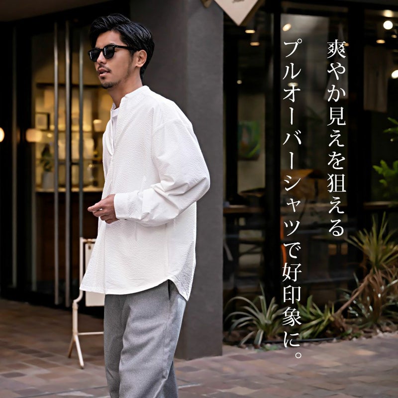 オーバーサイズのスキッパープルオーバーシャツ。