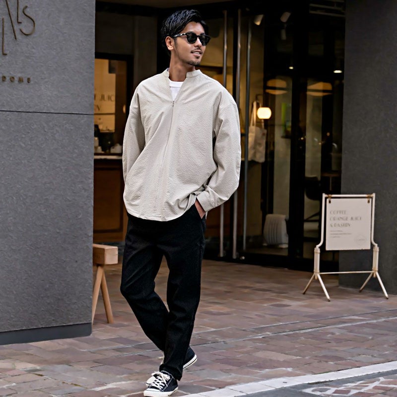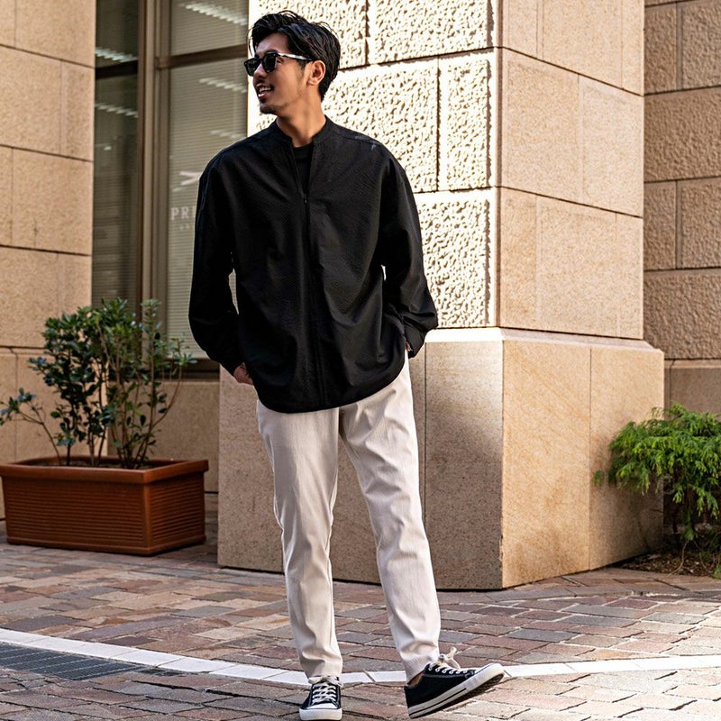 ジップを上げればスタンドカラーのスッキリした印象。