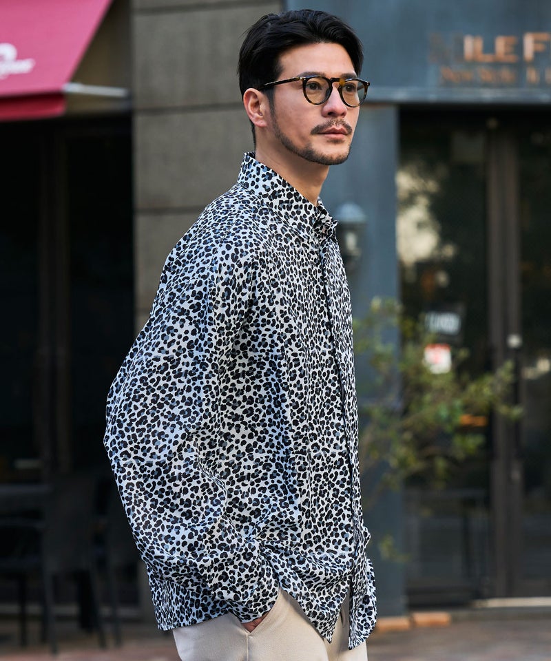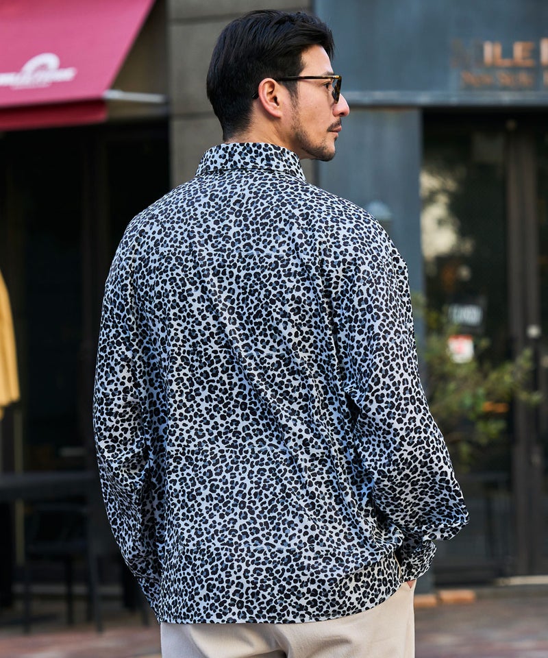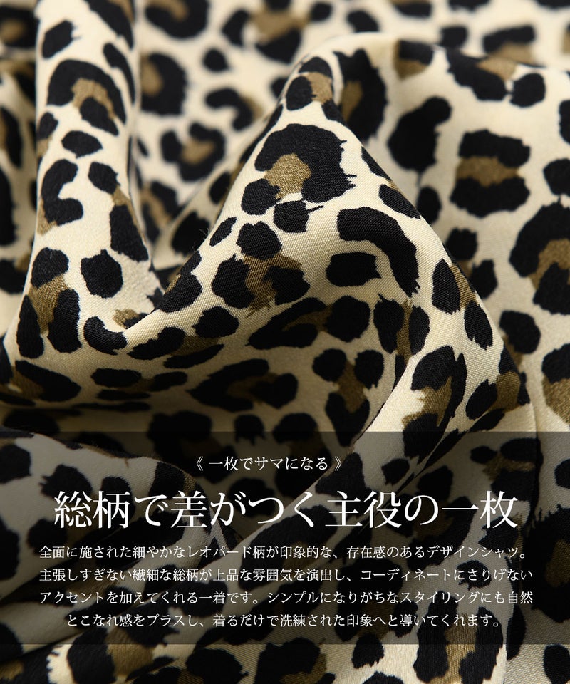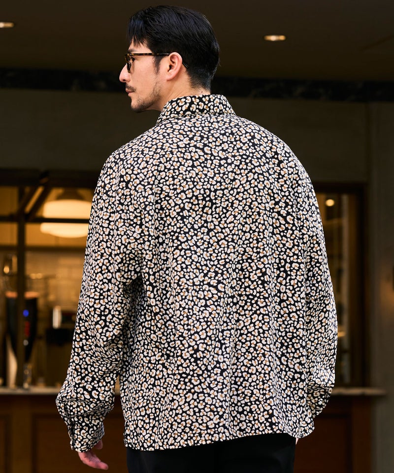 全面に施された細やかなレオパード柄が印象的な、存在感のあるデザインシャツ。
