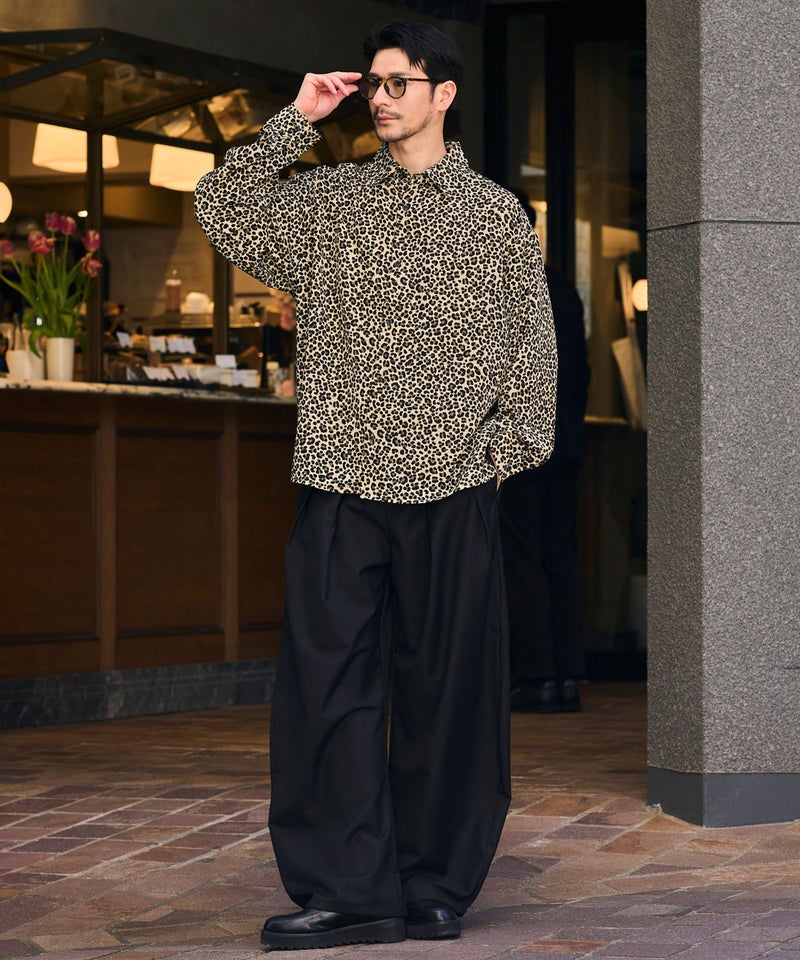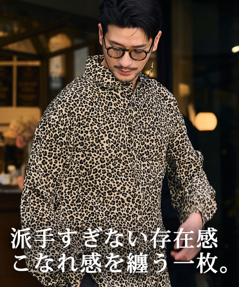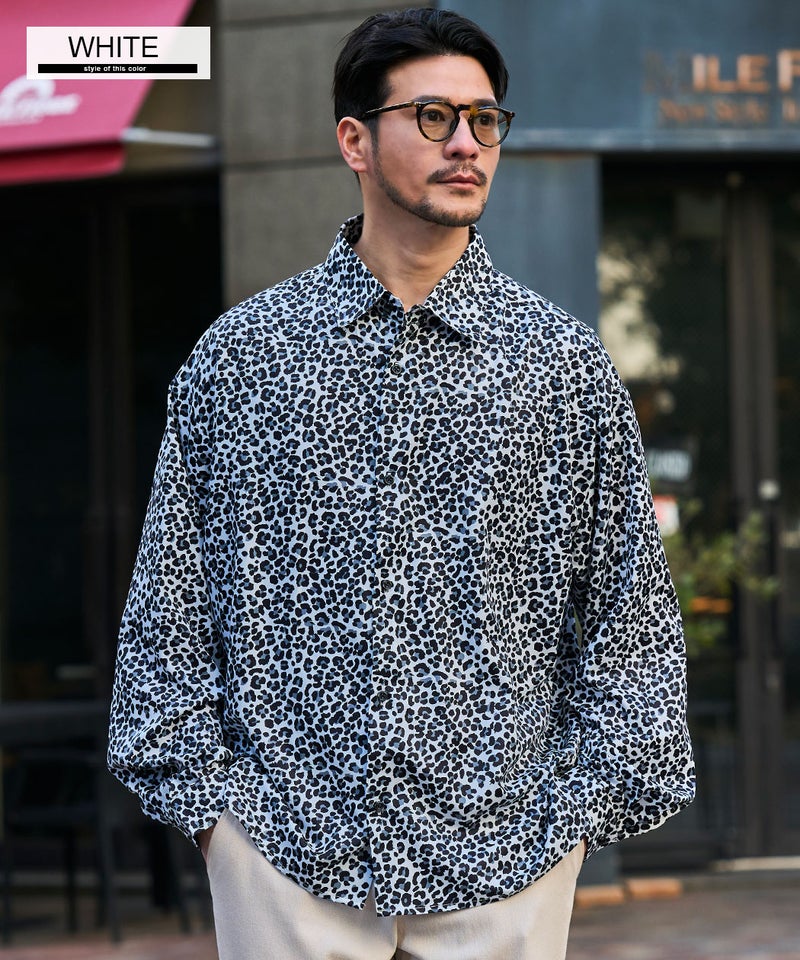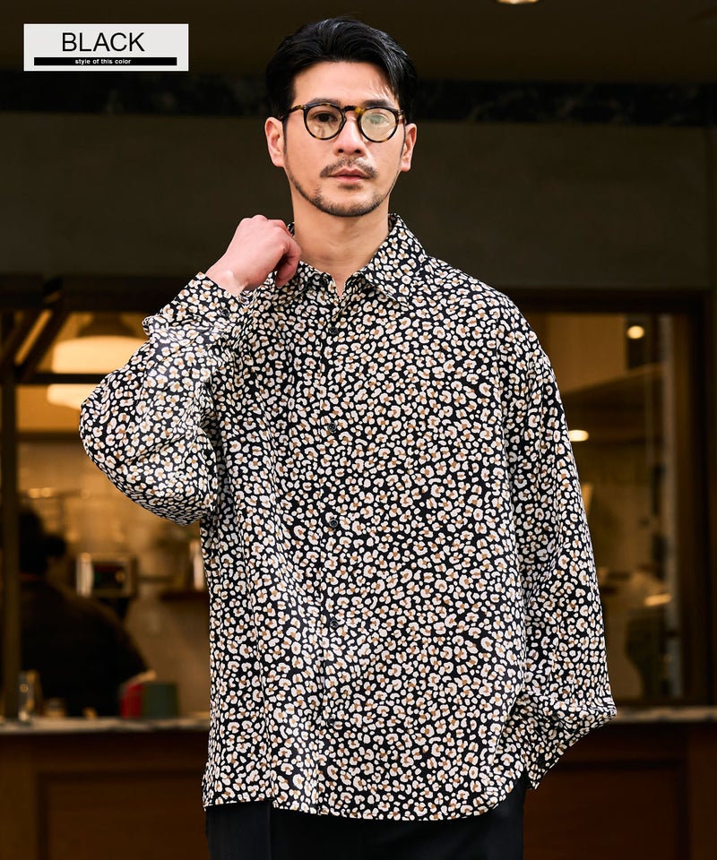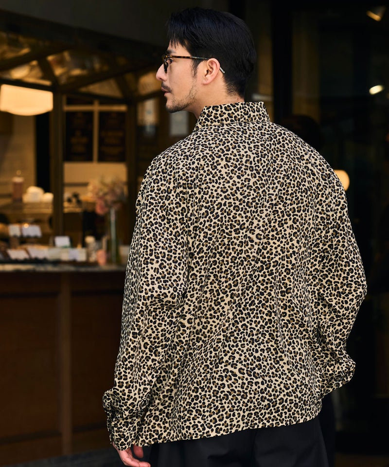 全面に施された細やかなレオパード柄が印象的な、存在感のあるデザインシャツ。