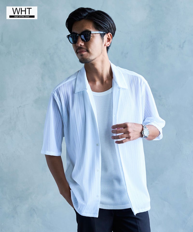 軽やかな透け感がシーズンムードを高めるメッシュ半袖シャツ。