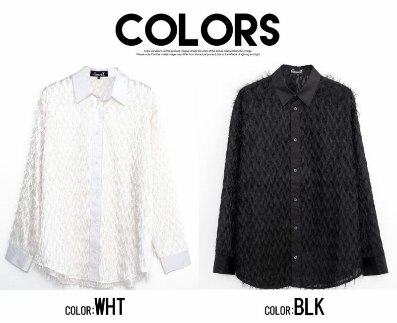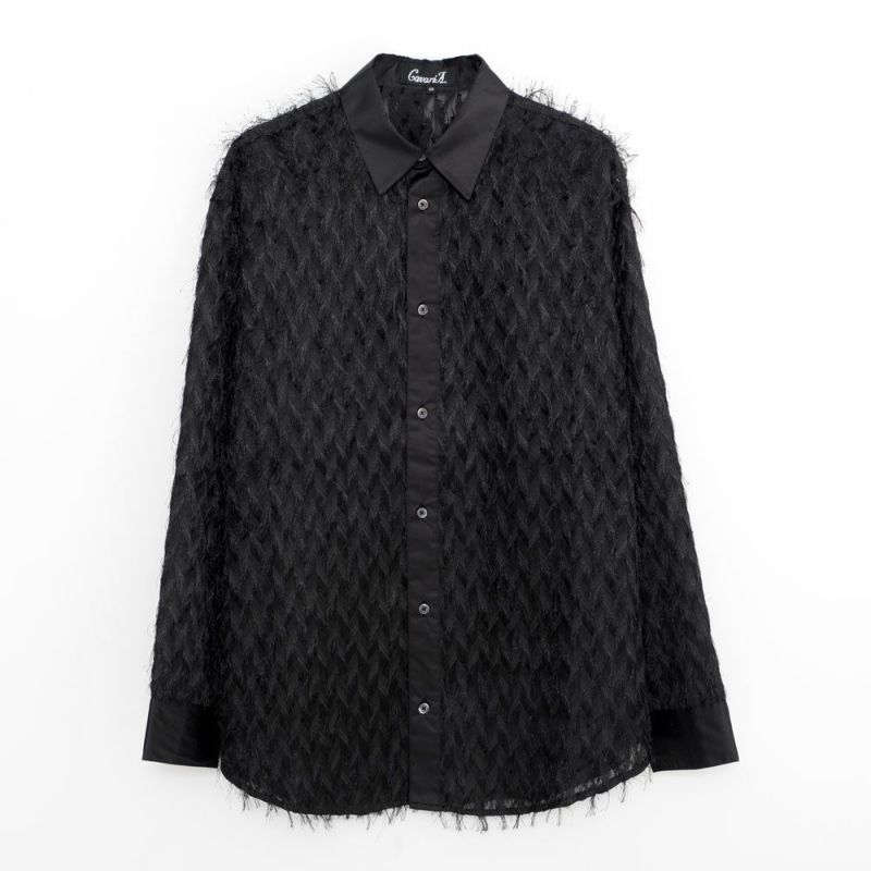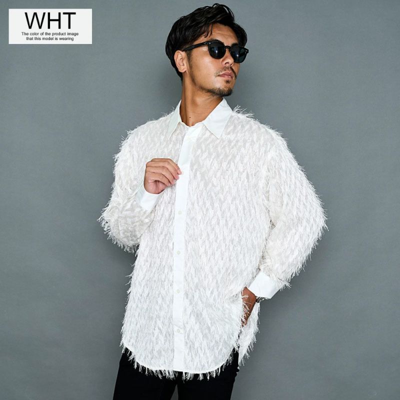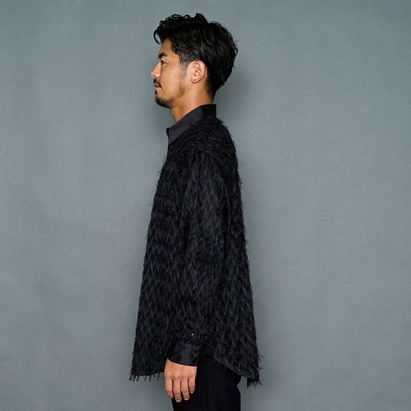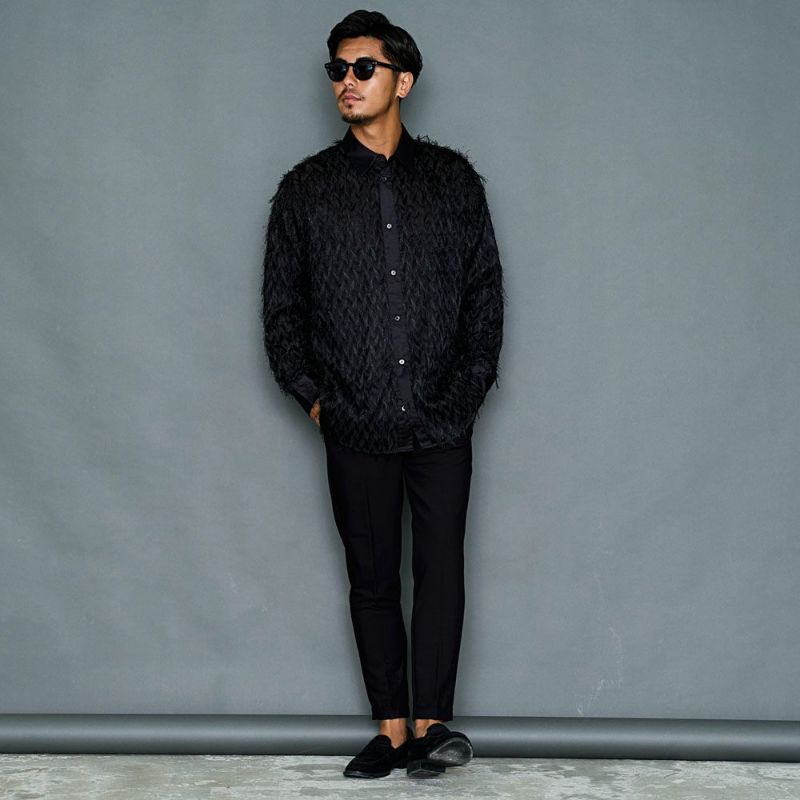 毛足の長いフェザーが印象的な長袖シャツ。