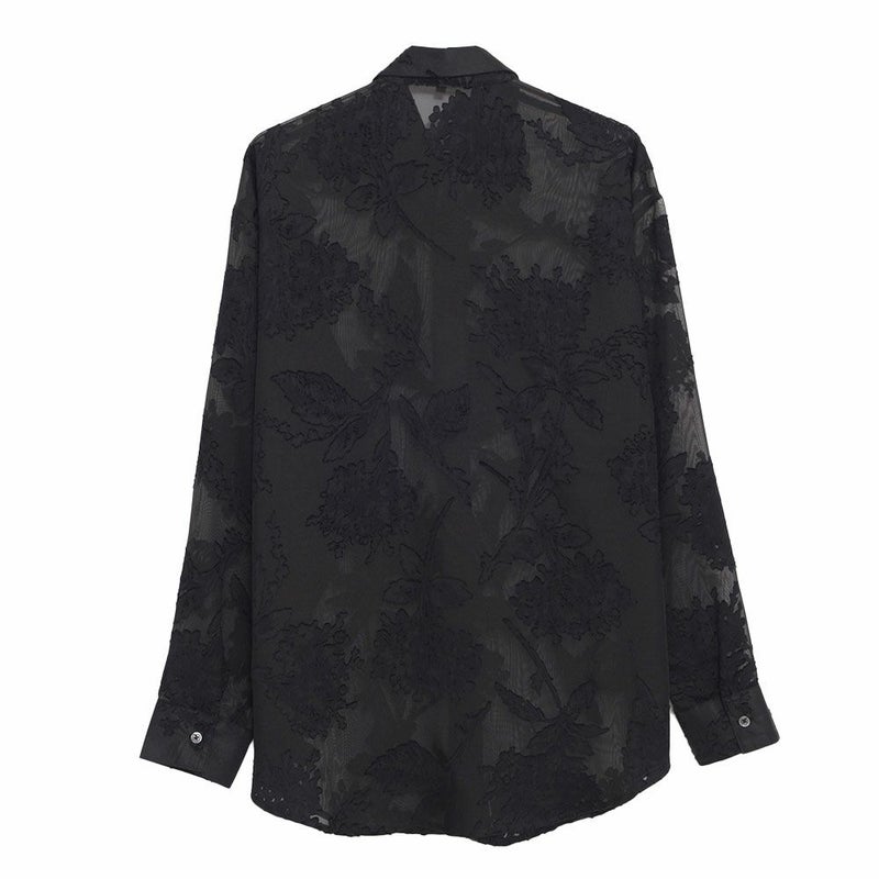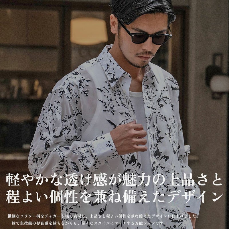 軽やかな透け感が魅力のシースルーフラワージャガードシャツ。