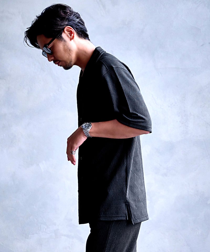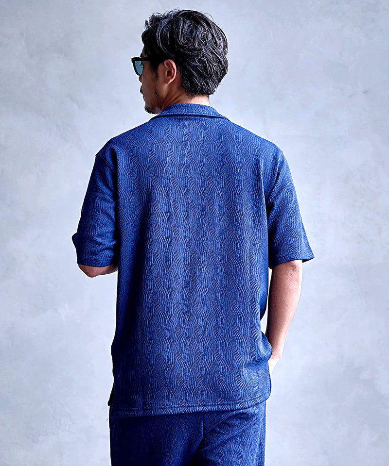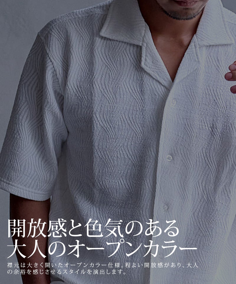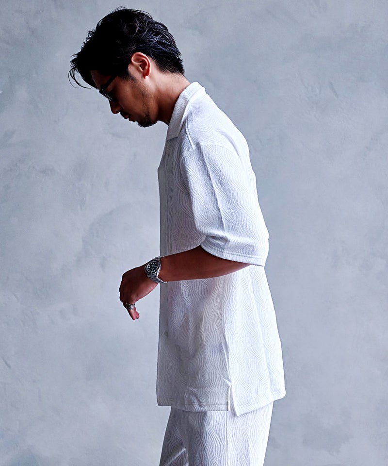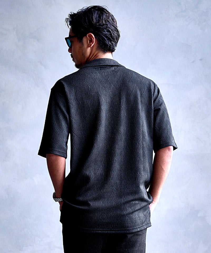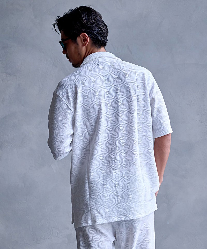 ジャガード織りで立体的な柄を表現した半袖シャツ。