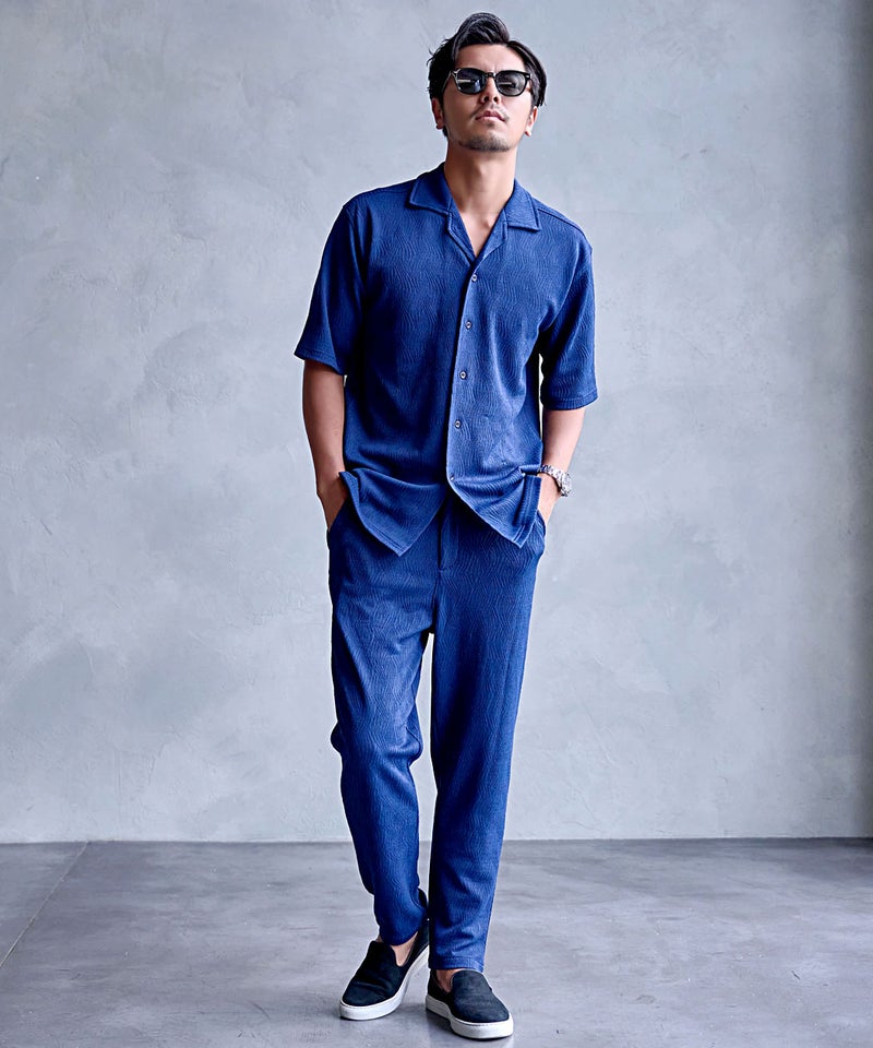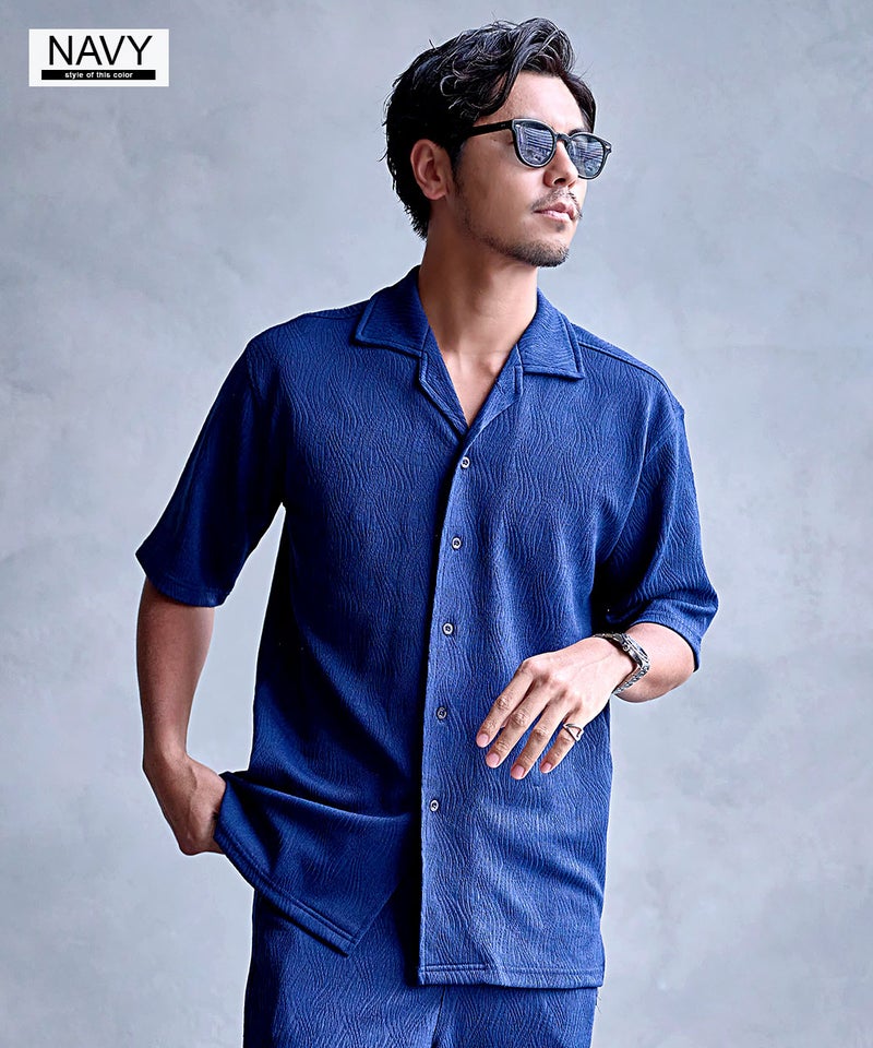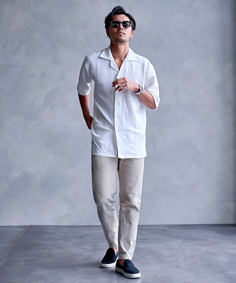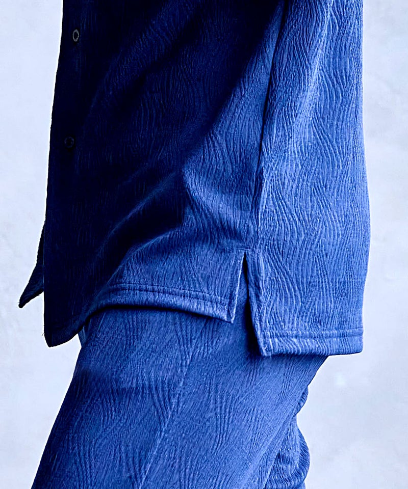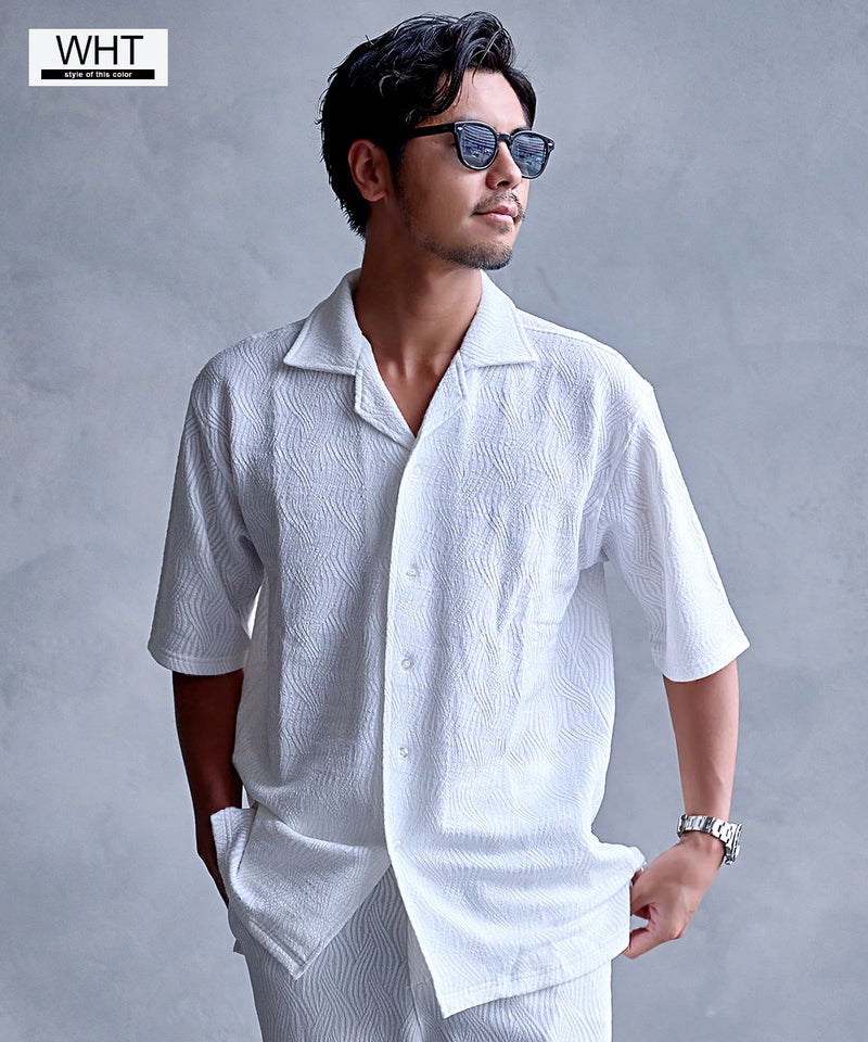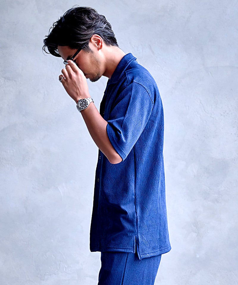 ジャガード織りで立体的な柄を表現した半袖シャツ。