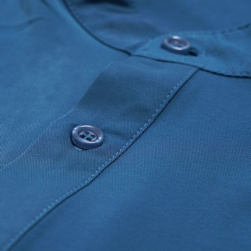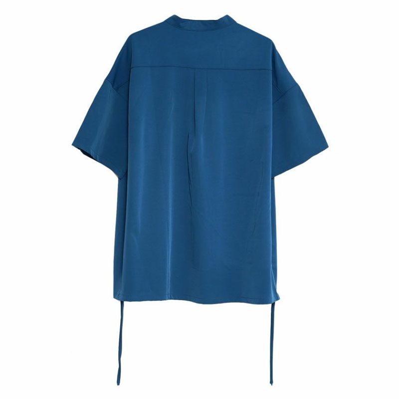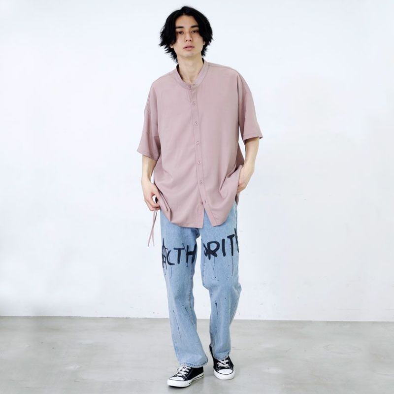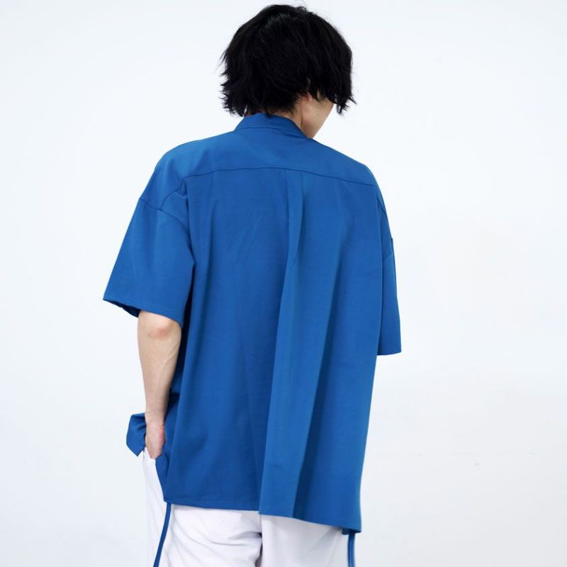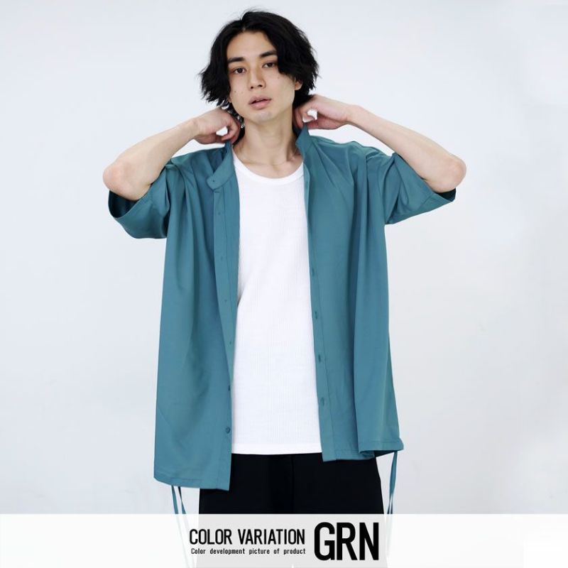 シンプルなバンドカラーがすっきりとした印象の半袖シャツ。
