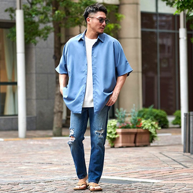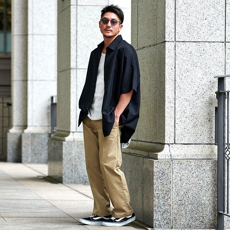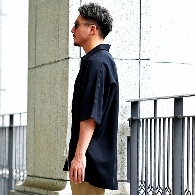 トレンドのオーバーサイズで仕上げた半袖シャツ。