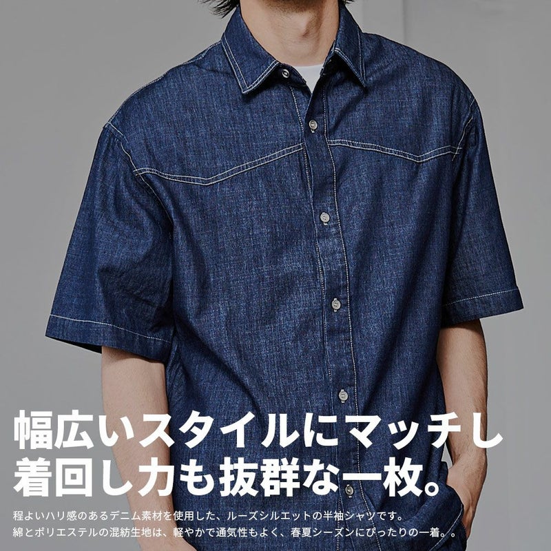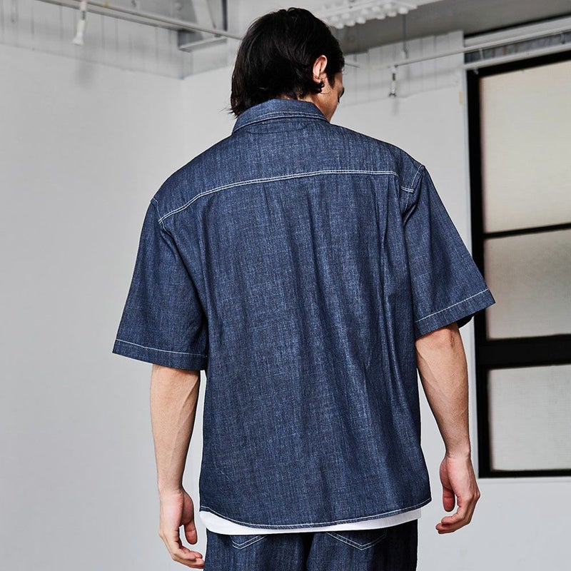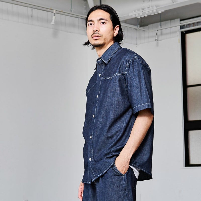 程よいハリ感のあるデニム素材を使用した、ルーズシルエットのデニムシャツ。