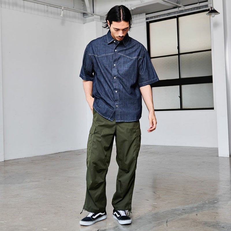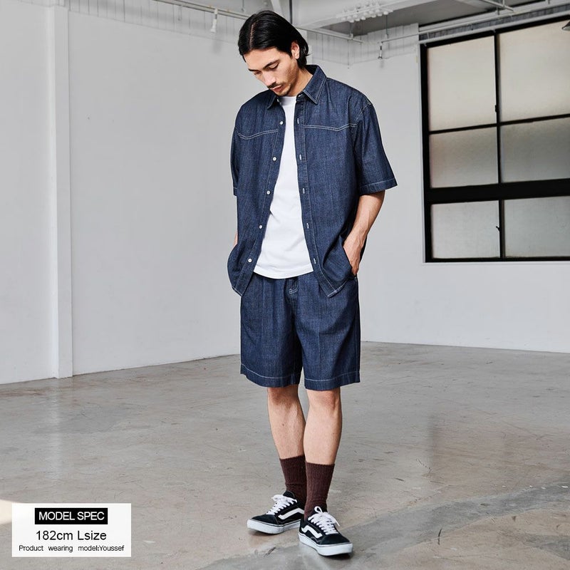 同シリーズの「CavariA ルーズシルエットデニムショーツ」とセットアップでの着用も可能です。