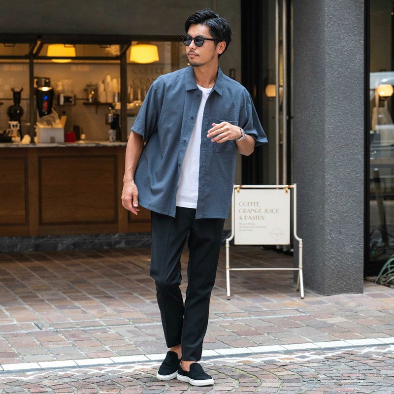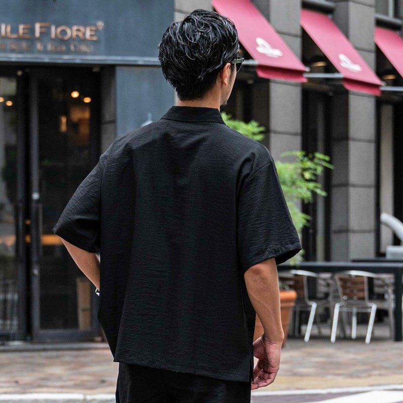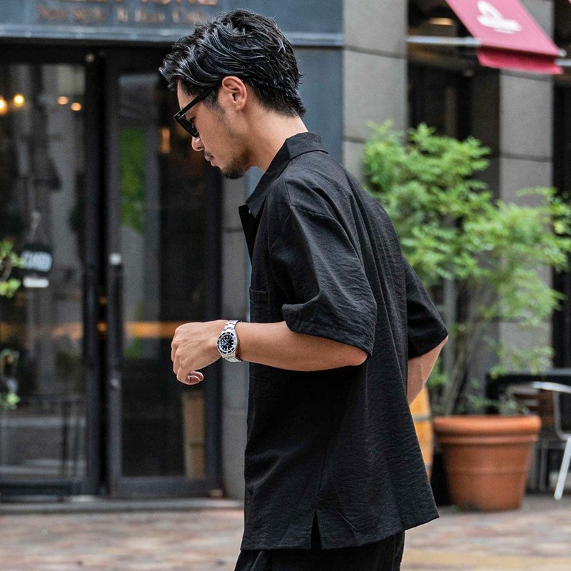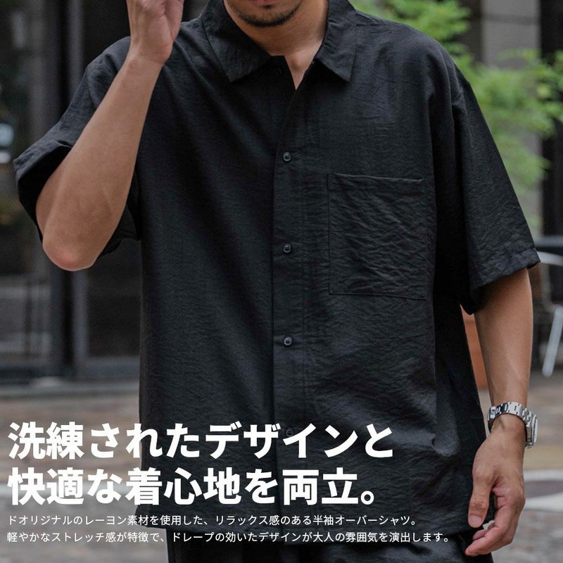オリジナルのレーヨン素材を使用した、リラックス感のある半袖オーバーシャツ。