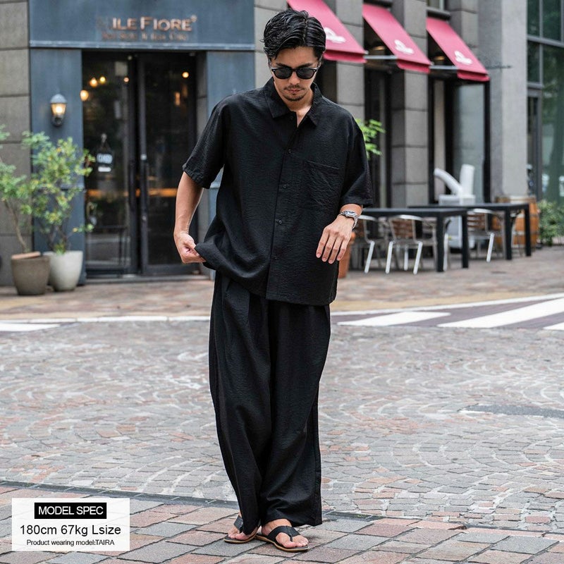 また同素材の布帛Tワイドパンツとのセットアップもおすすめ。