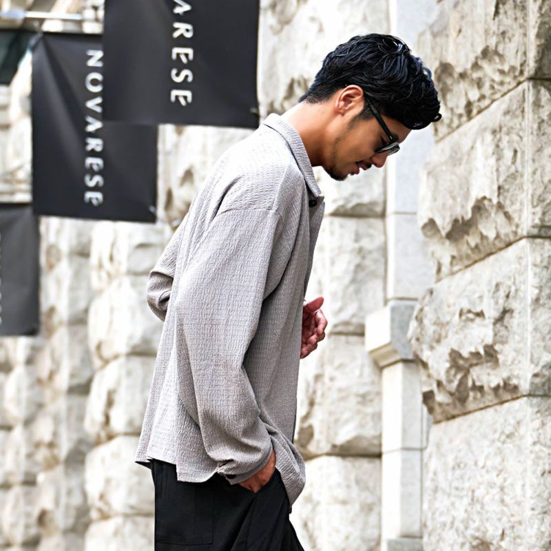表面に独特のシワ感と凹凸のある「楊柳(ようりゅう)生地」を採用し、さらりとした質感と清涼感のある着心地を実現したロングスリーブシャツです。