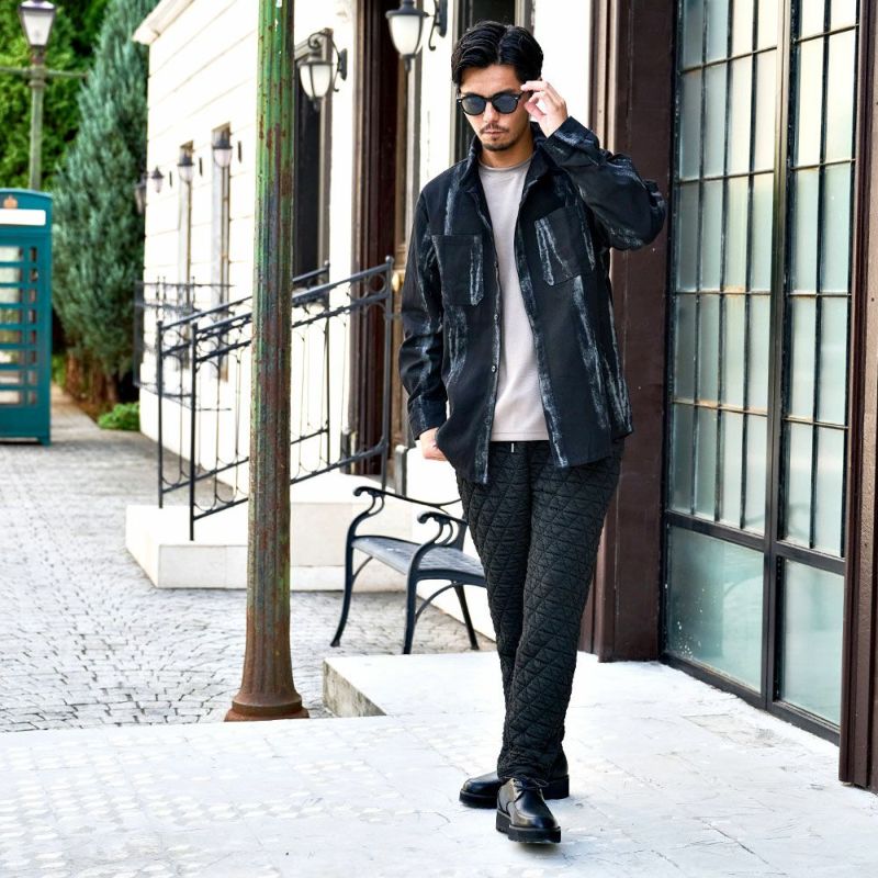 モノトーンベースの色味がどんなボトムスにも馴染み、デニムやスラックスはもちろん、ワイドパンツとの相性も抜群。