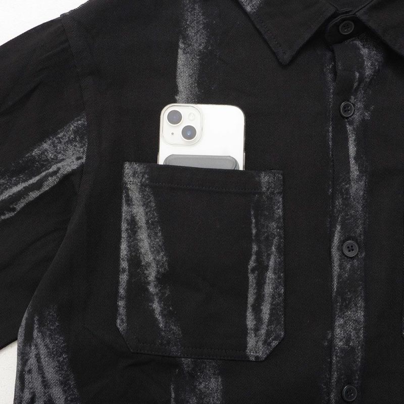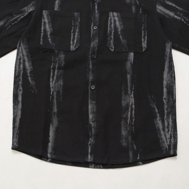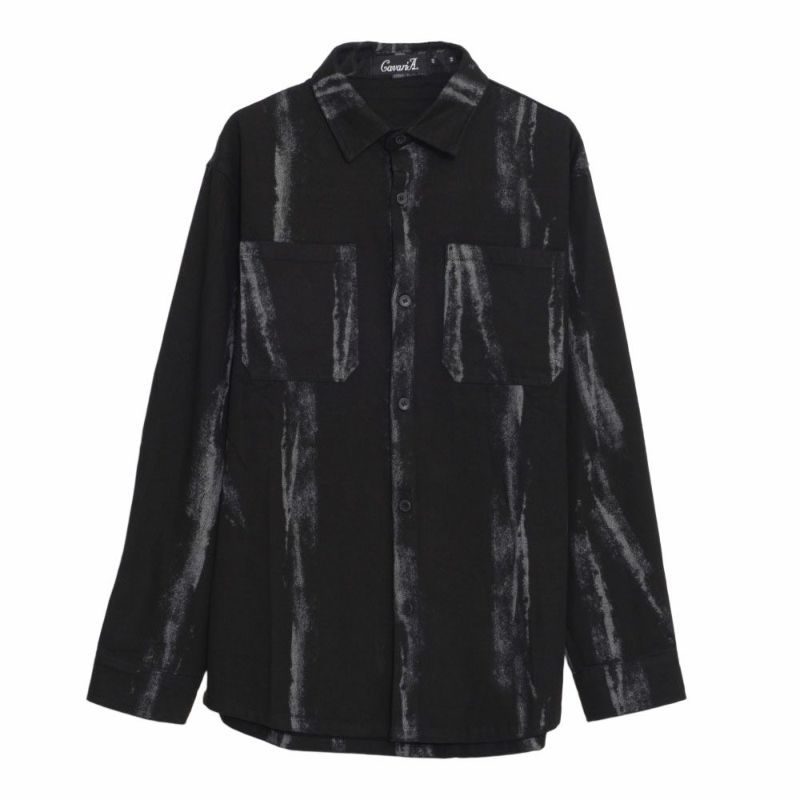 ムラ感のあるプリントが存在感を放つ。ストリートに映えるツイルシャツで大人の余裕を纏うシンプルながら光の加減で表情が変わるラグジュアリーな質感が大人のスタイルを格上げします。 CavariA(キャバリア)ムラプリントツイル長袖シャツ/全2色