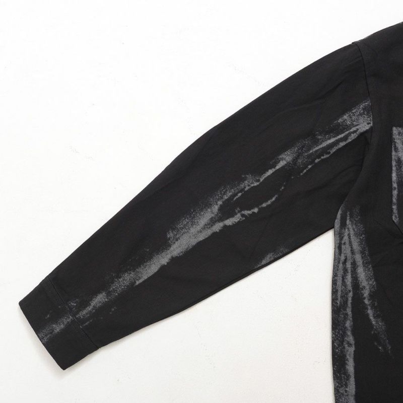 独特なムラ感のあるプリントが目を惹く、存在感抜群の一着です。