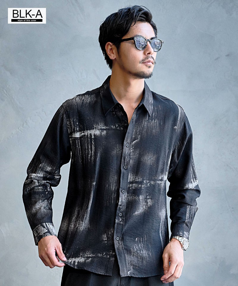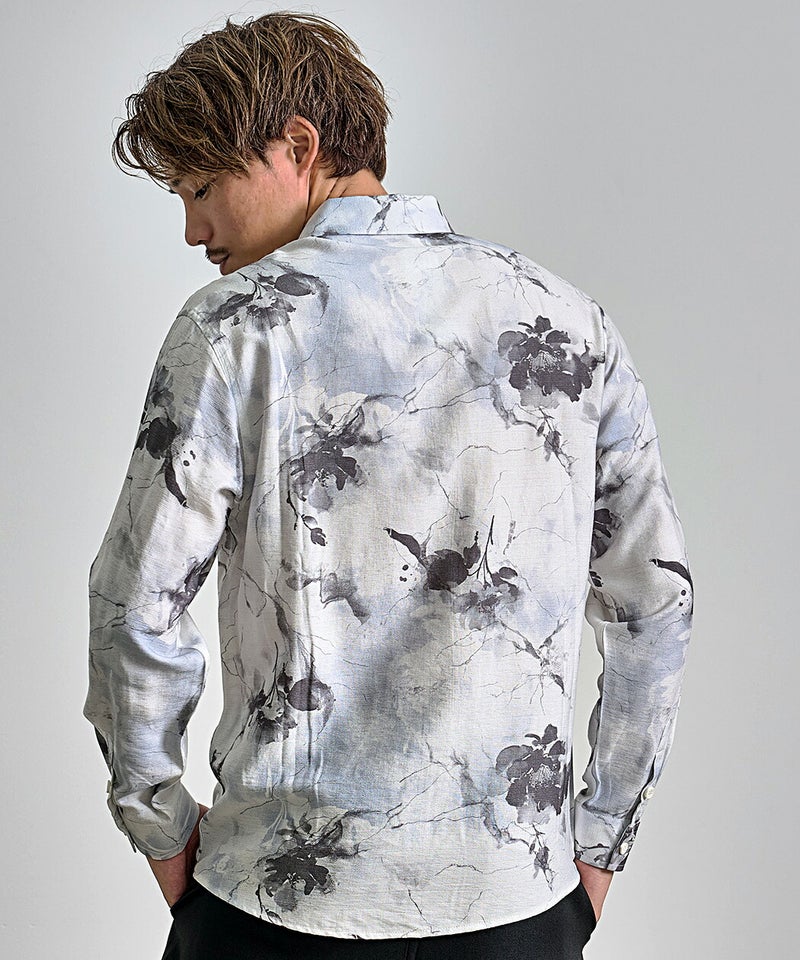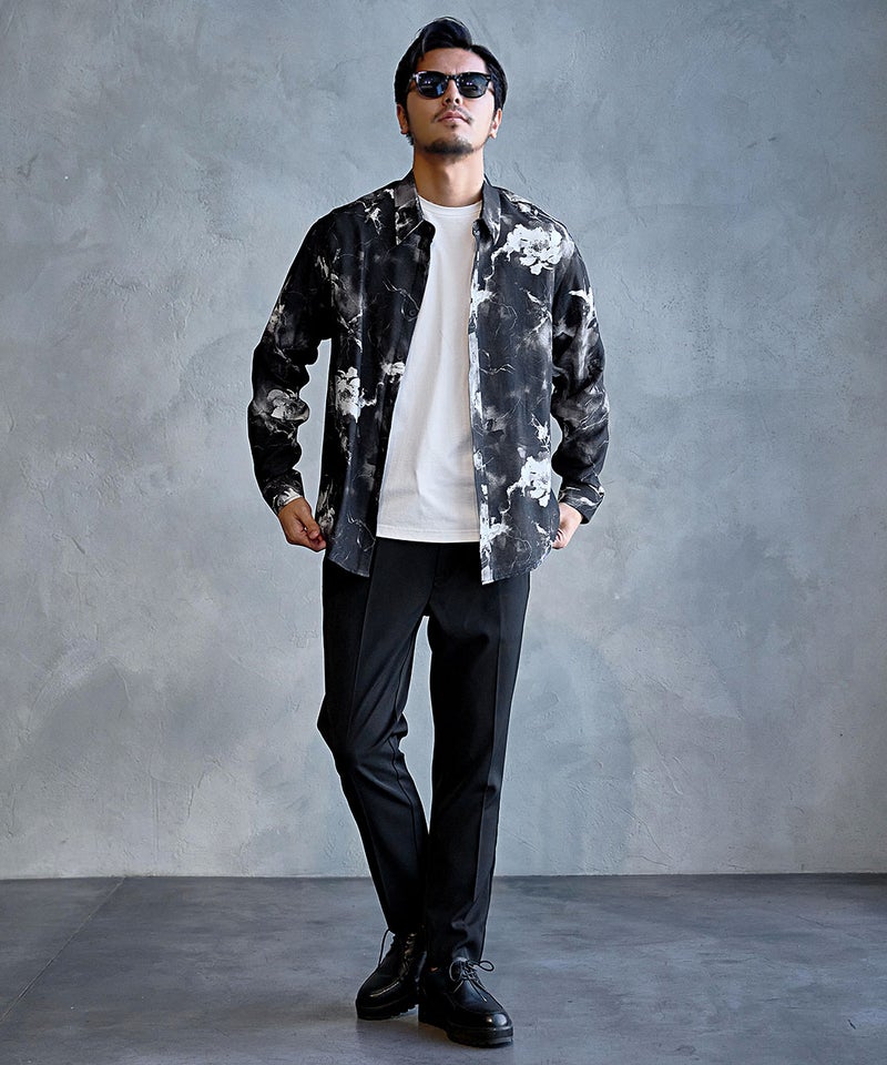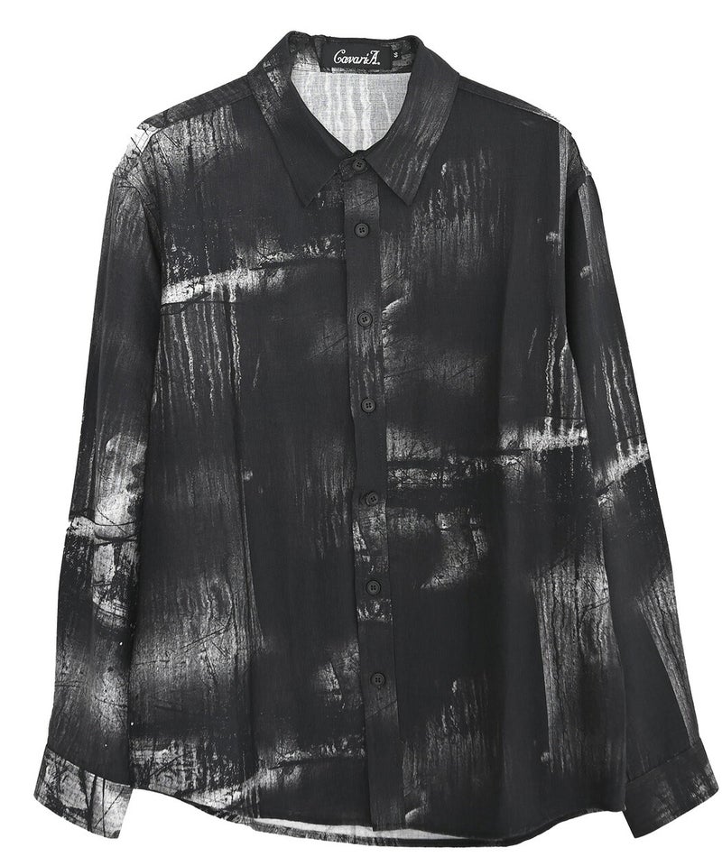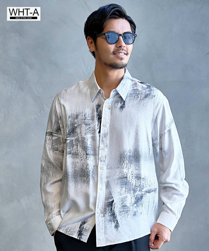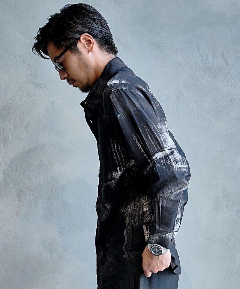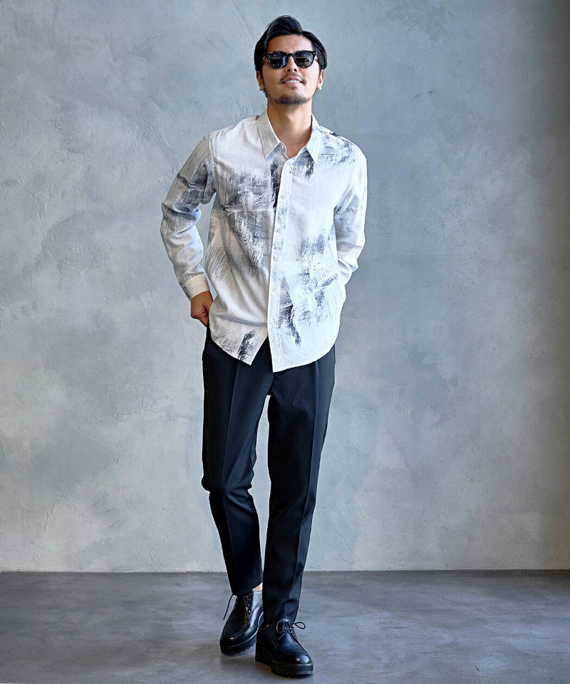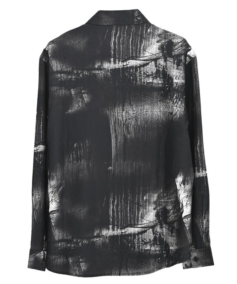 モノトーンで構成された洗練プリントが印象的なレギュラーシャツ。