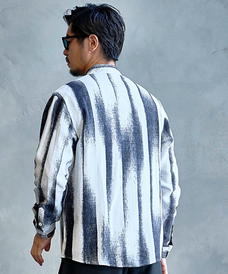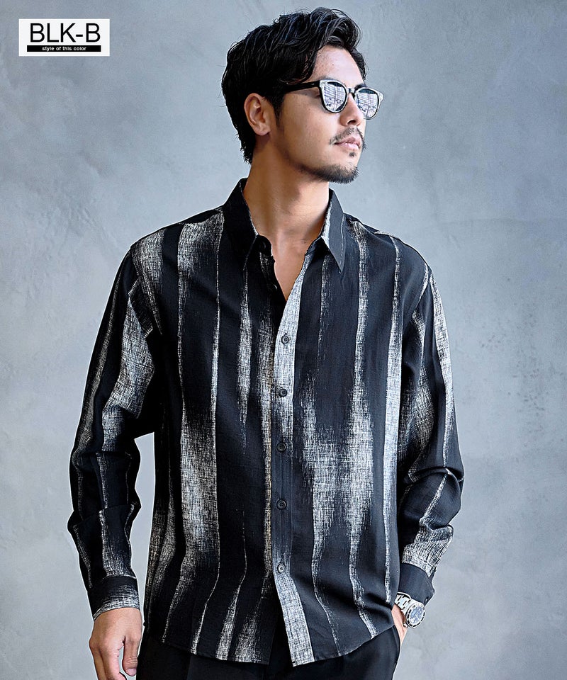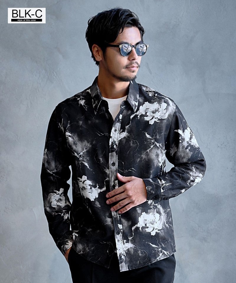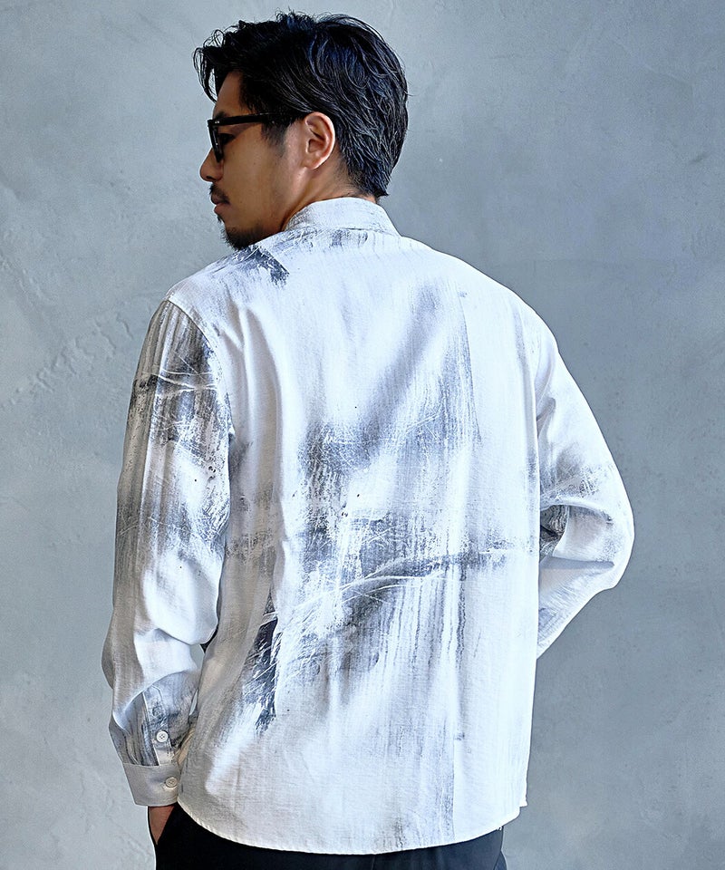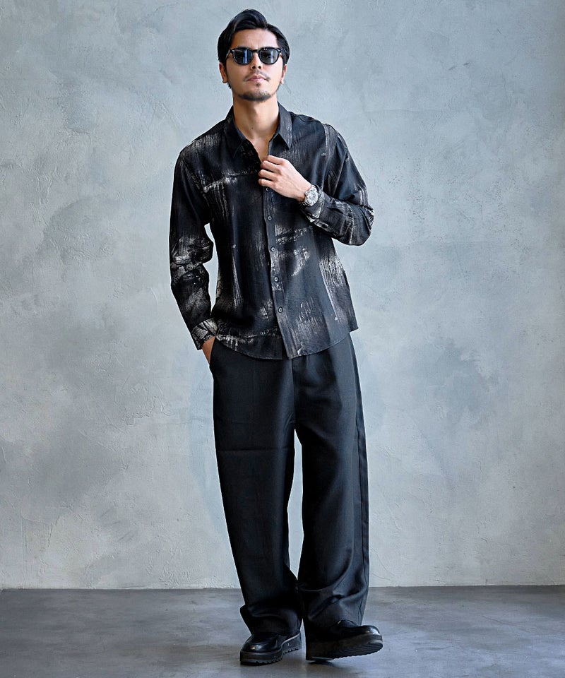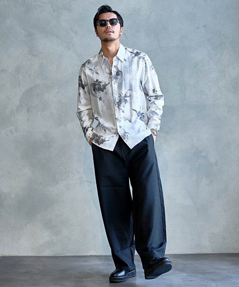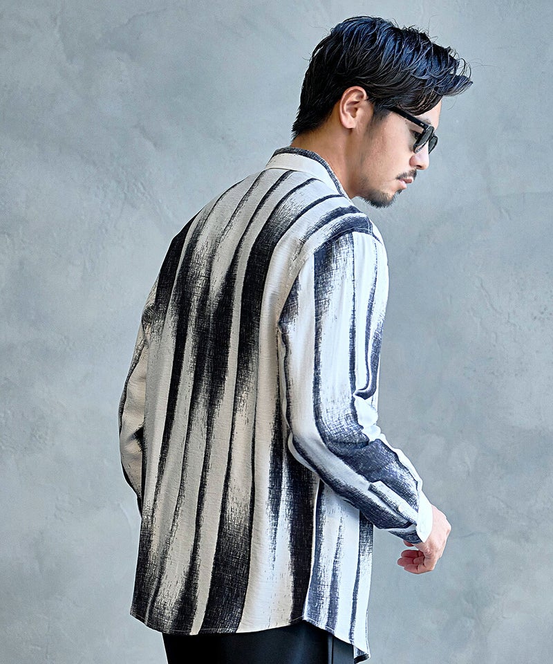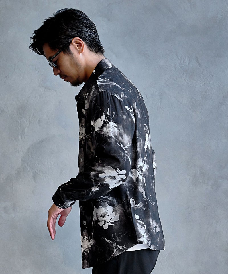 モノトーンで構成された洗練プリントが印象的なレギュラーシャツ。