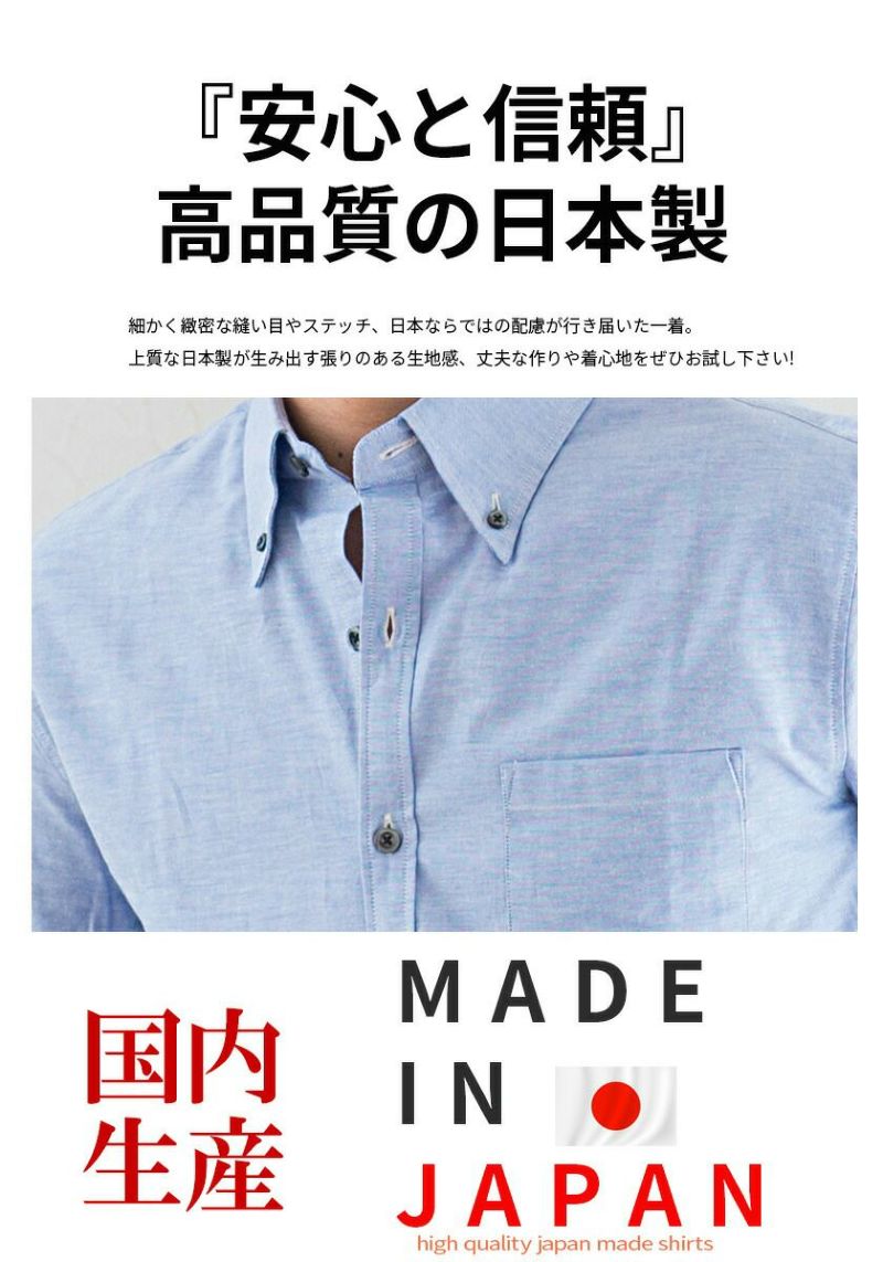 国内縫製シャツですので、しっかりとした素材感が安心の高品質な日本製シャツです。