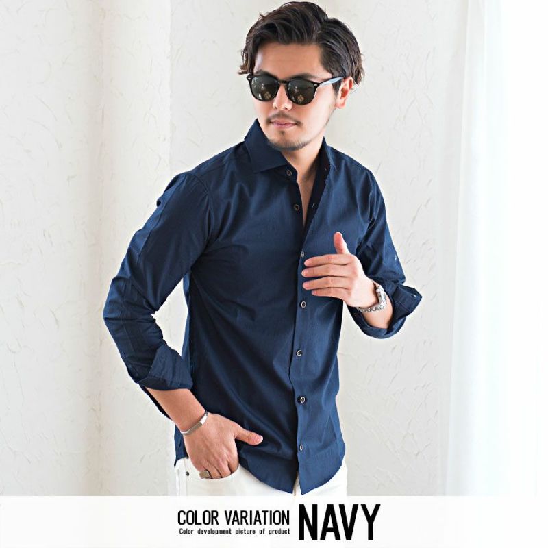 上品なブロード生地を採用した日本製素材&日本国内工場縫製のしっかりした縫製が魅力な長袖シャツ。