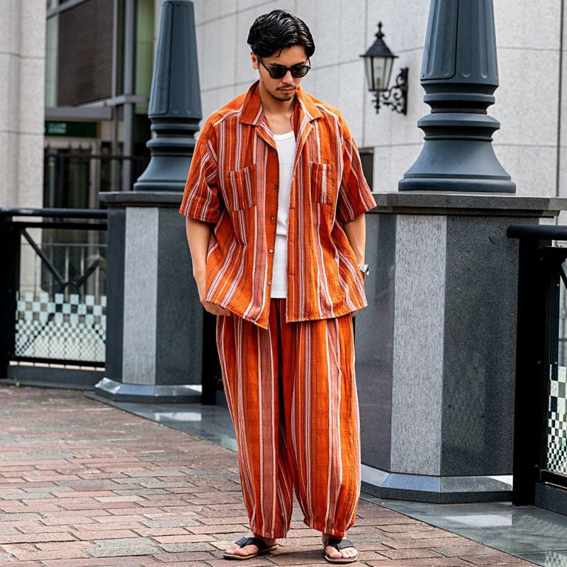 【南インドの彩りを纏う、大人の開襟シャツ】