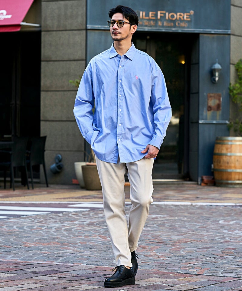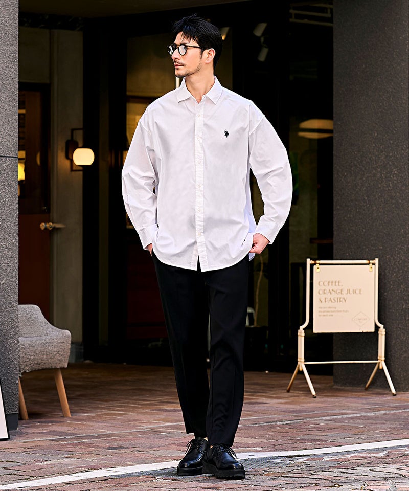 肌に優しい綿100%の高品質なオックスフォード生地を使用した長袖シャツ。