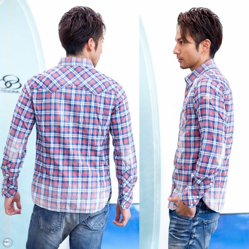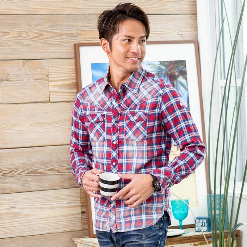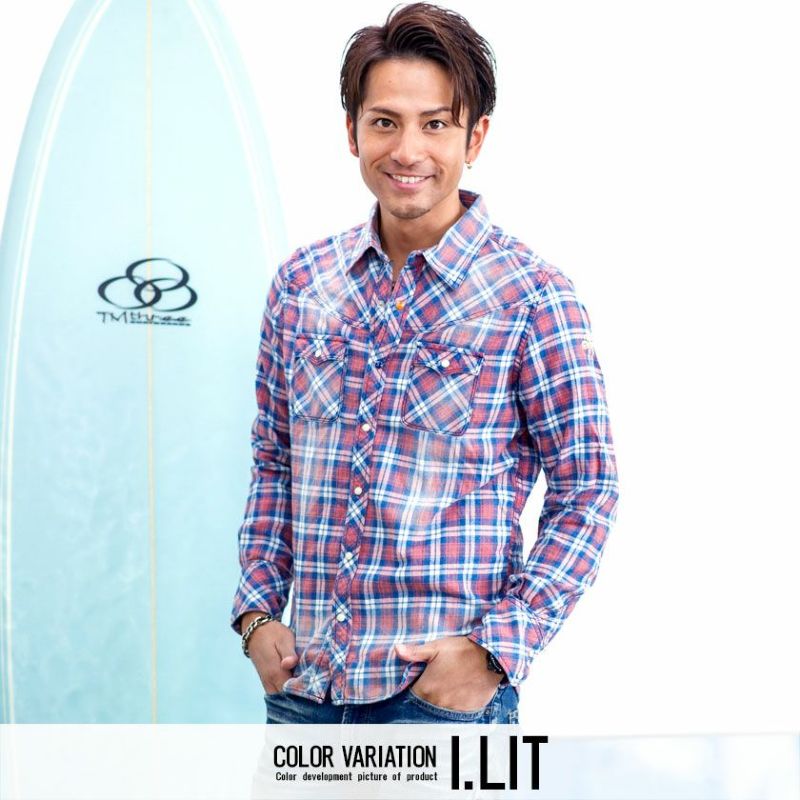 シンプルで清潔感のあるシャツ。ビジネスにもカジュアルにも使える万能アイテム。 【SALE/セール】【送料無料】TMT(ティーエムティー)ORIGINAL INDIGO CHECK SHIRTS/全2色