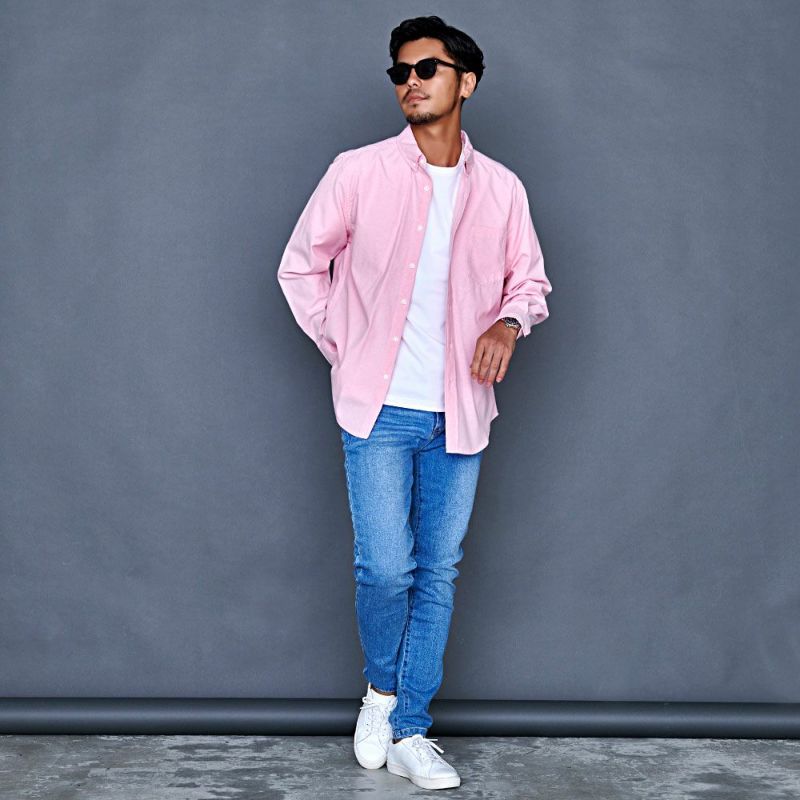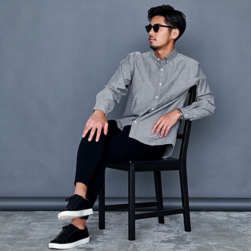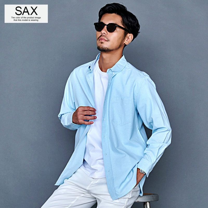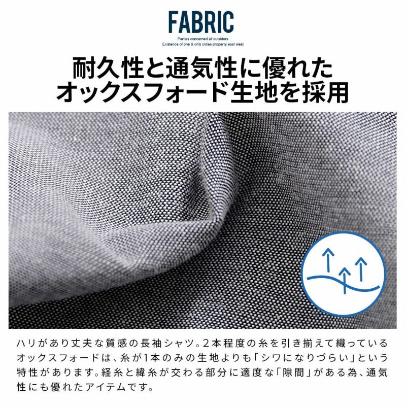 ハリがあり丈夫な質感が特徴のオックスフォード生地を使用した長袖シャツ。