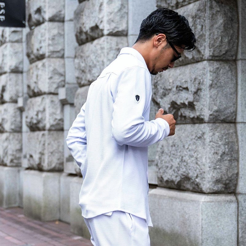 同素材のロングパンツ、ショーツと合わせてセットアップでの着用もオススメです。
