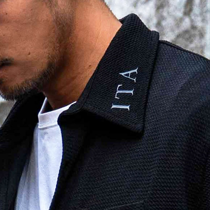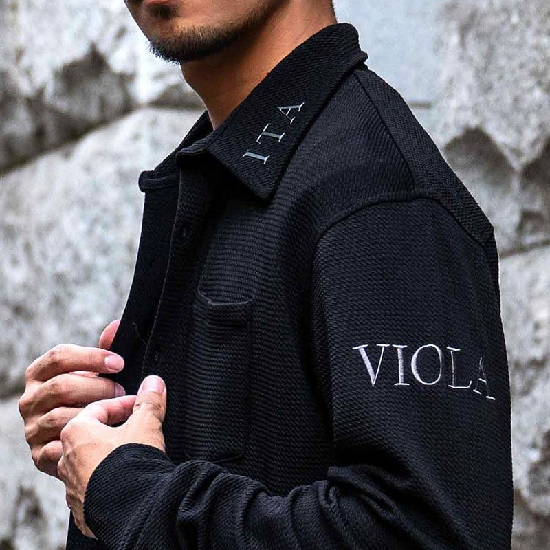 襟には立体感のある「ITA」のロゴ、左肩部分には「VIOLA」の刺繍をデザイン。