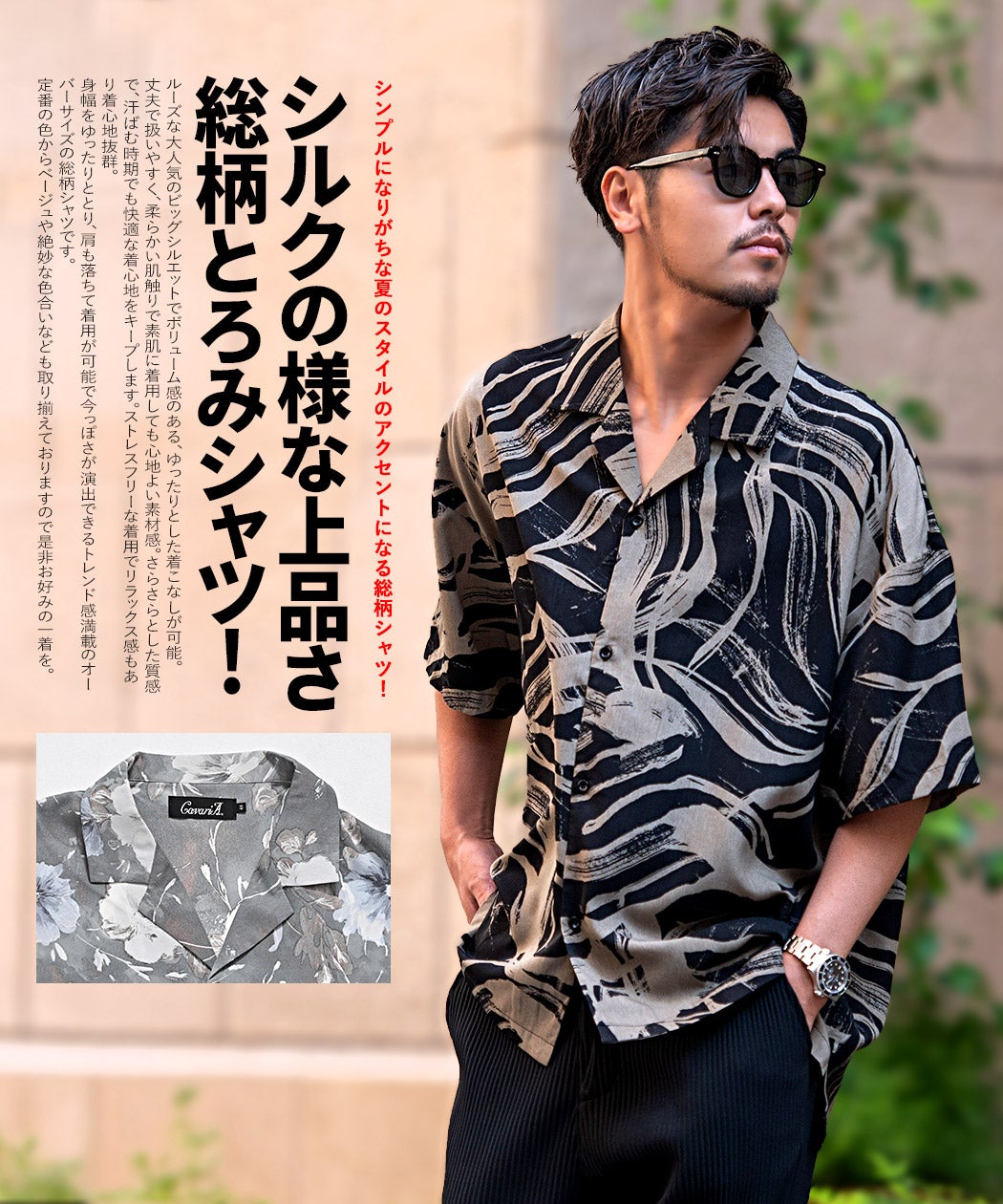 他の画像を見る 国内メーカーより生地を厳選し、縫製・生産のすべて「国産」にこだわったホリゾンタルカラーシャツ。ややタイトなシルエットでスタイリッシュなサイズ感なのでどんなボトムスと相性抜群◎ CavariA(キャバリア)日本製フラワープリントホリゾンタルカラー長袖シャツ/全2色 販売価格 ¥ 5,940 税込 カートに入れる お気に入りに登録する