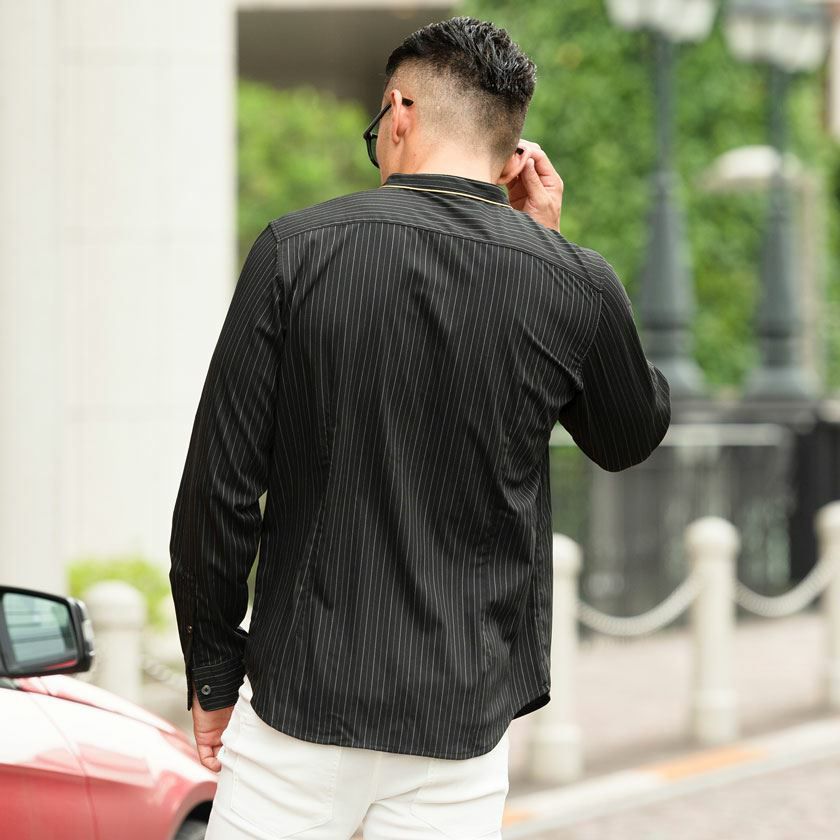 他の画像を見る シンプルで清潔感のあるシャツ。ビジネスにもカジュアルにも使える万能アイテム。 CavariA(キャバリア)ゴールドパイピング入りバンドカラー長袖ストライプシャツ/全3色 販売価格 ¥ 5,390 税込 カートに入れる お気に入りに登録する