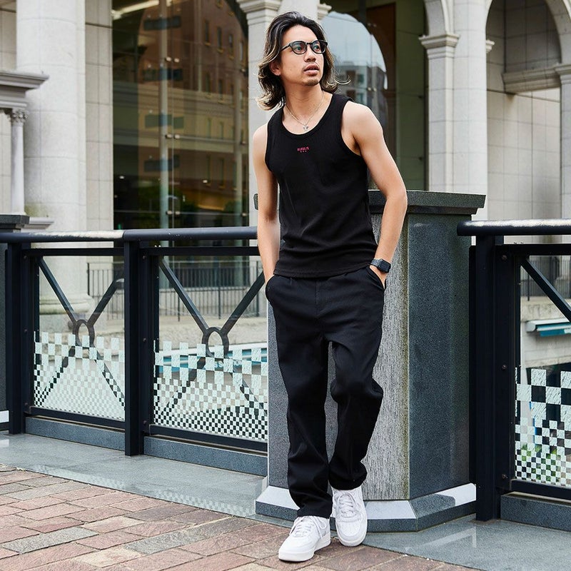 スパンテレコ素材を使用した、タイトフィットなシルエットが魅力のタンクトップ。