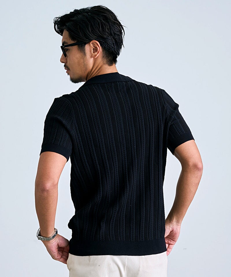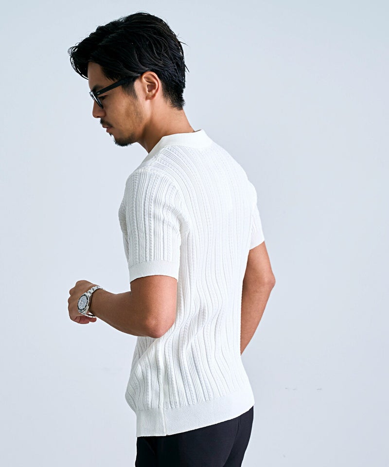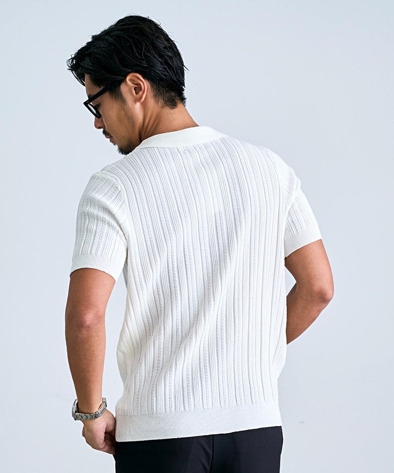 立体感のあるジャガード織りが特徴的なポロシャツ。