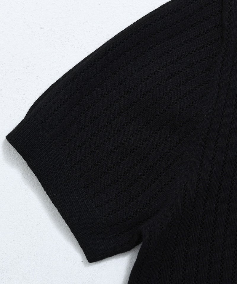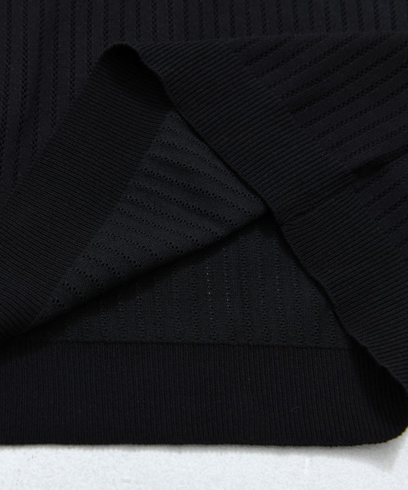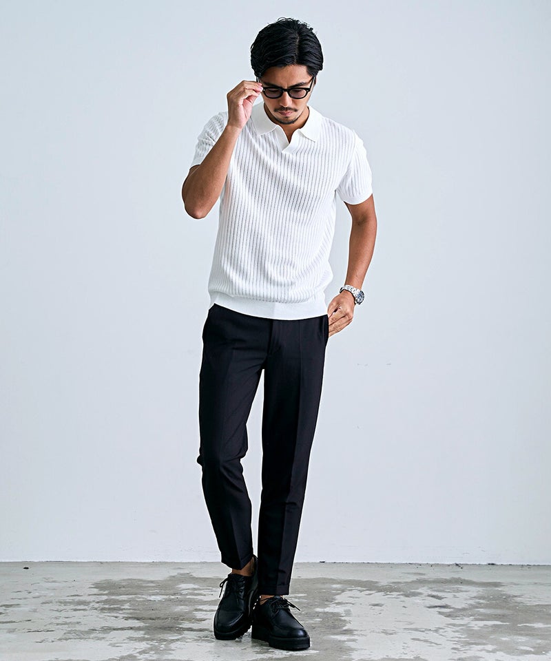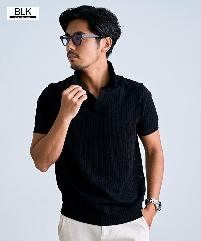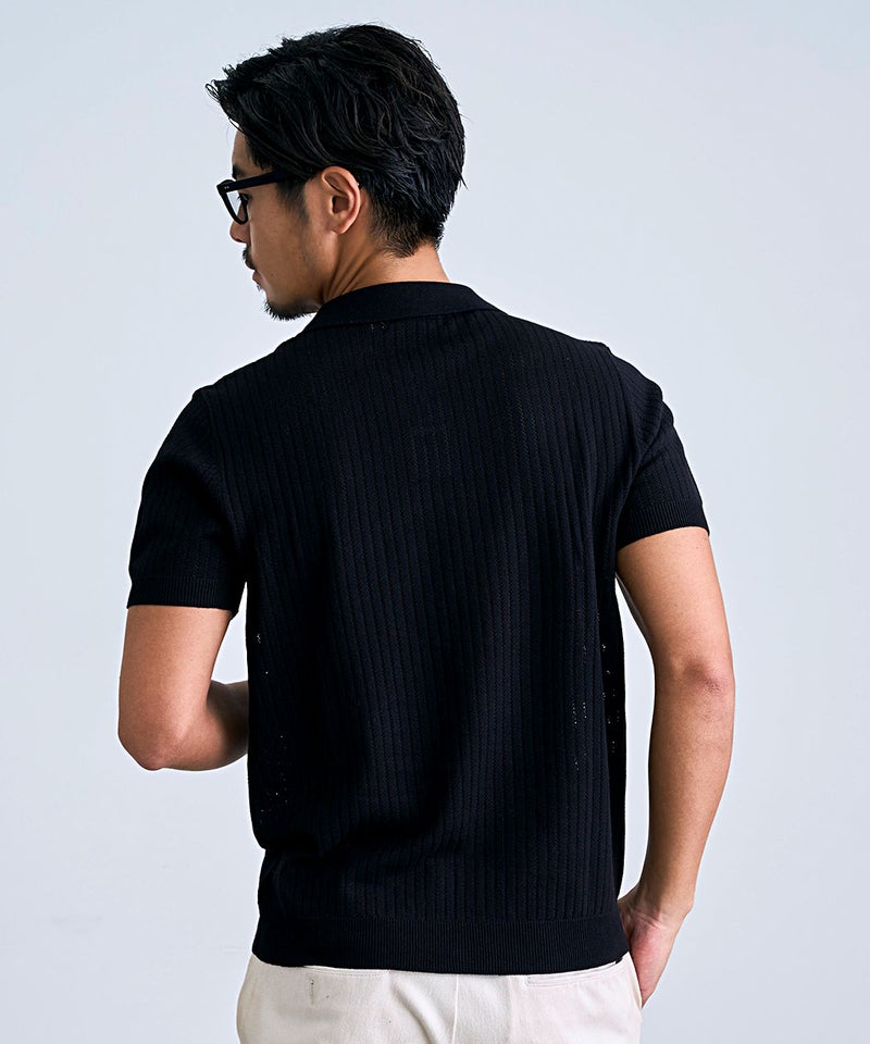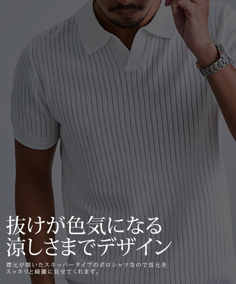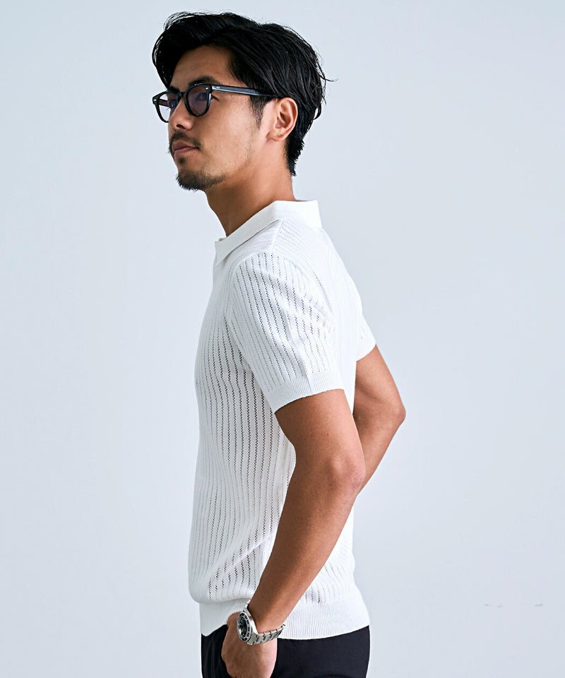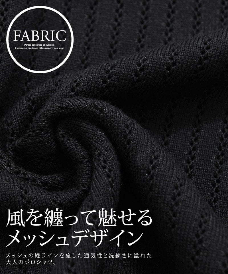 メッシュの縦ラインを施した、清涼感と洗練さを兼ね備えたポロシャツ。