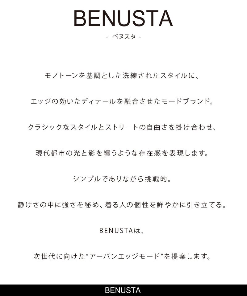 シンプルな中にもどこか遊び心を感じさせる、BENUSTAらしい雰囲気が漂う仕上がりとなっています。