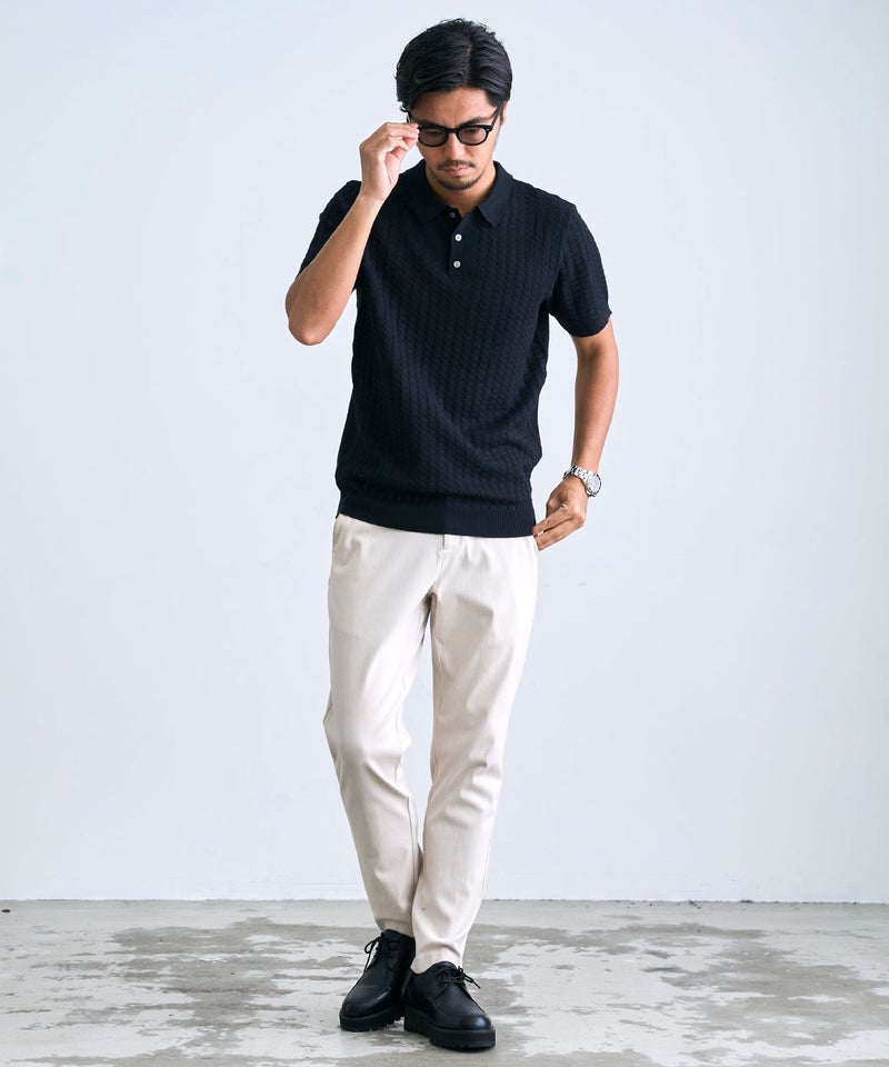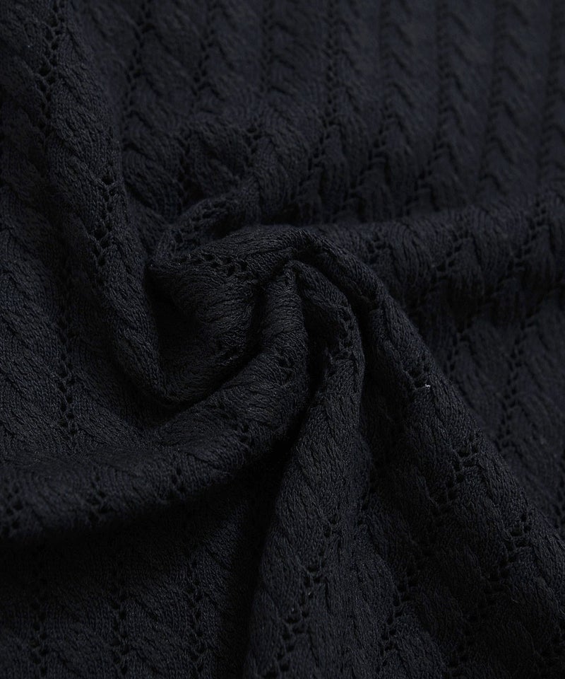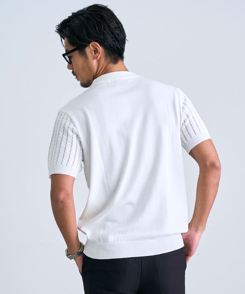 程よく透け感のある透かし編みの生地を採用することで、見た目にも軽やかな印象をプラス。