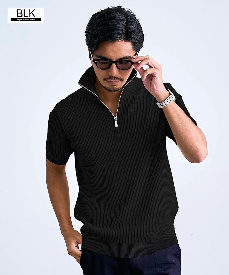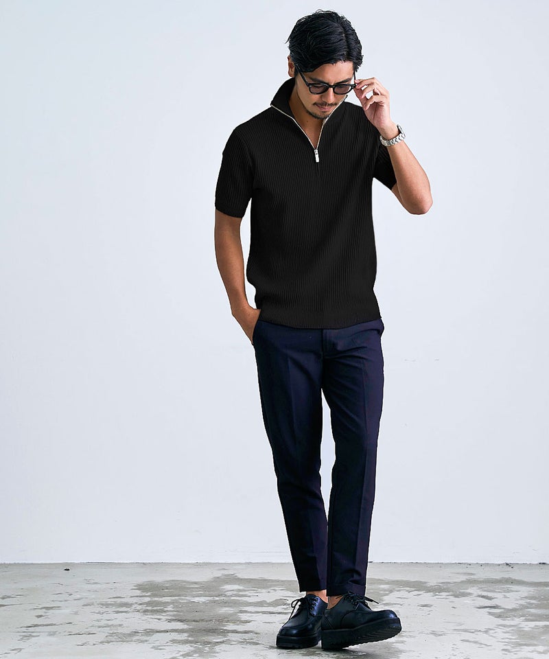 立体感のあるリブニットで仕上げた、上品な雰囲気漂うポロシャツ。