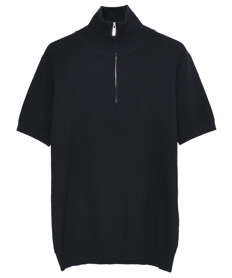 襟元はスタンドカラー仕様、フロントにはハーフジップデザインを採用。