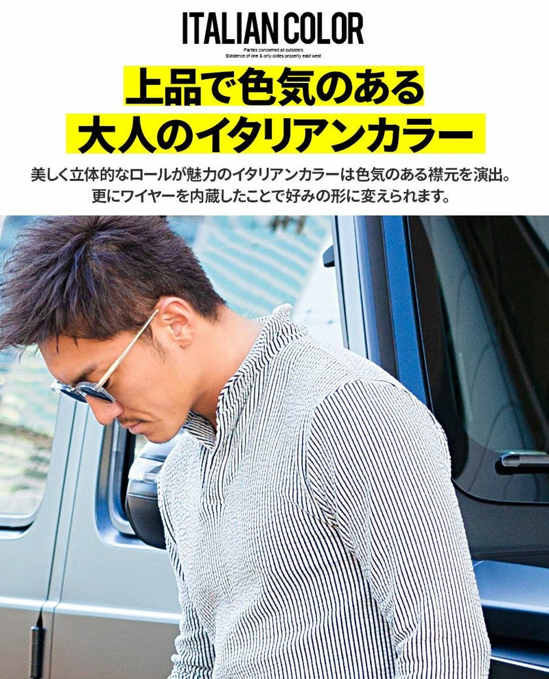 美しく立体的なロールが魅力のイタリアンカラーは、上品で色気のある襟元を演出。