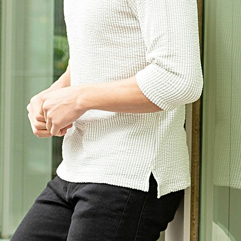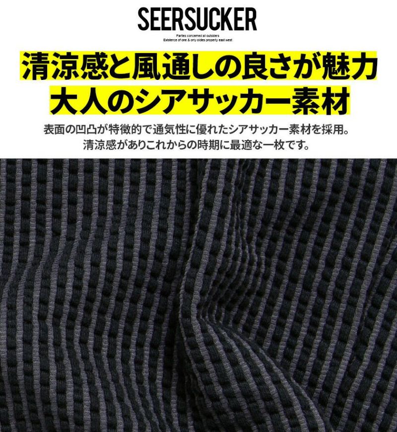 表面の凹凸が特徴的で通気性に優れたシアサッカー素材を採用。